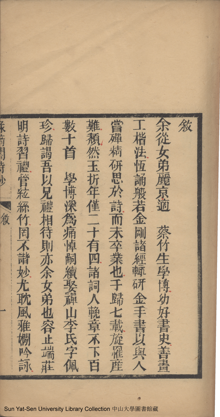 | (PRINT FRIENDLY VERSION) 綠綺閣詩鈔:一卷(清李佩珍撰)。清光緒二十六年(1900)刊本 ![]() 頁碼 : 敘.2b | 点 击 放 大 | 綠綺閣詩鈔:一卷(清李佩珍撰)。清光緒二十六年(1900)刊本![]() 頁碼 : 敘.2a | 点 击 放 大 | 綠綺閣詩鈔:一卷(清李佩珍撰)。清光緒二十六年(1900)刊本![]() 頁碼 : 敘.1b | 点 击 放 大 | 綠綺閣詩鈔:一卷(清李佩珍撰)。清光緒二十六年(1900)刊本![]() 頁碼 : 敘.1a | 点 击 放 大 | 返回 |