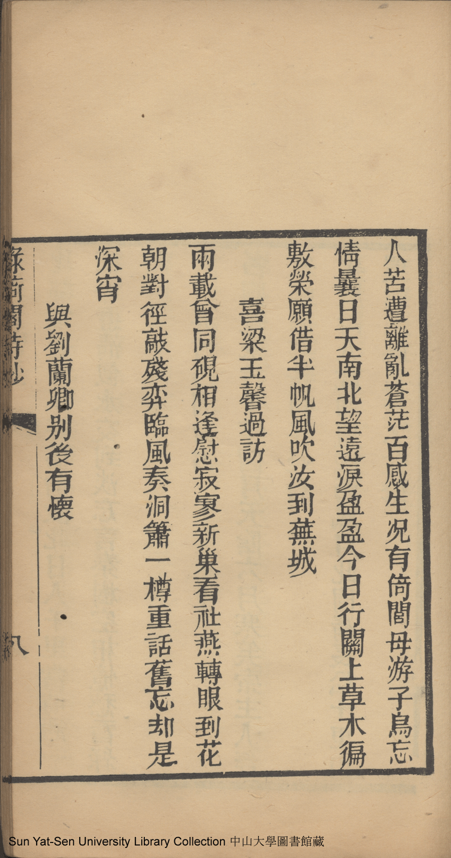 | (PRINT FRIENDLY VERSION) 綠綺閣詩鈔:一卷(清李佩珍撰)。清光緒二十六年(1900)刊本 ![]() 頁碼 : 1.8a | 点 击 放 大 | 綠綺閣詩鈔:一卷(清李佩珍撰)。清光緒二十六年(1900)刊本![]() 頁碼 : 1.7b | 点 击 放 大 | 返回 |