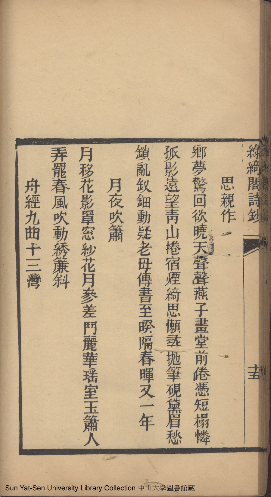 | (PRINT FRIENDLY VERSION) 綠綺閣詩鈔:一卷(清李佩珍撰)。清光緒二十六年(1900)刊本 ![]() 頁碼 : 1.16a | 点 击 放 大 | 綠綺閣詩鈔:一卷(清李佩珍撰)。清光緒二十六年(1900)刊本![]() 頁碼 : 1.15b | 点 击 放 大 | 返回 |