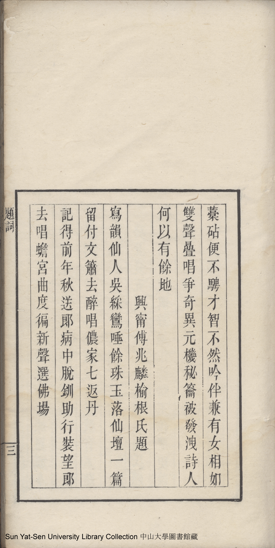 | (PRINT FRIENDLY VERSION) 唾絨餘草:一卷(清吴小姑撰)。同治(1862-1874)刻本 ![]() 頁碼 : 題詞3b | 点 击 放 大 | 唾絨餘草:一卷(清吴小姑撰)。同治(1862-1874)刻本![]() 頁碼 : 題詞3a | 点 击 放 大 | 返回 |