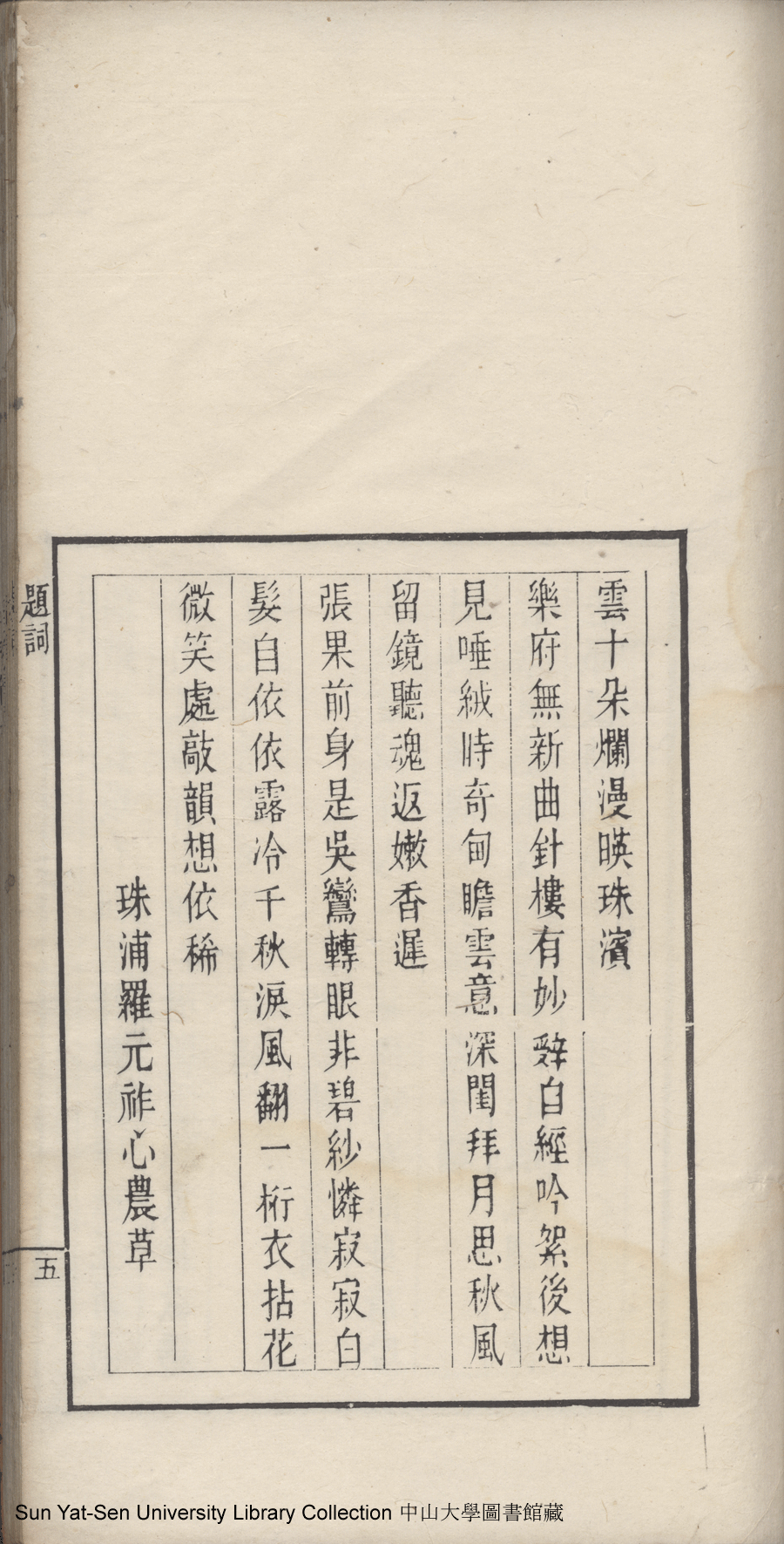 | (PRINT FRIENDLY VERSION) 唾絨餘草:一卷(清吴小姑撰)。同治(1862-1874)刻本 ![]() 頁碼 : 題詞5a | 点 击 放 大 | 唾絨餘草:一卷(清吴小姑撰)。同治(1862-1874)刻本![]() 頁碼 : 題詞4b | 点 击 放 大 | 返回 |