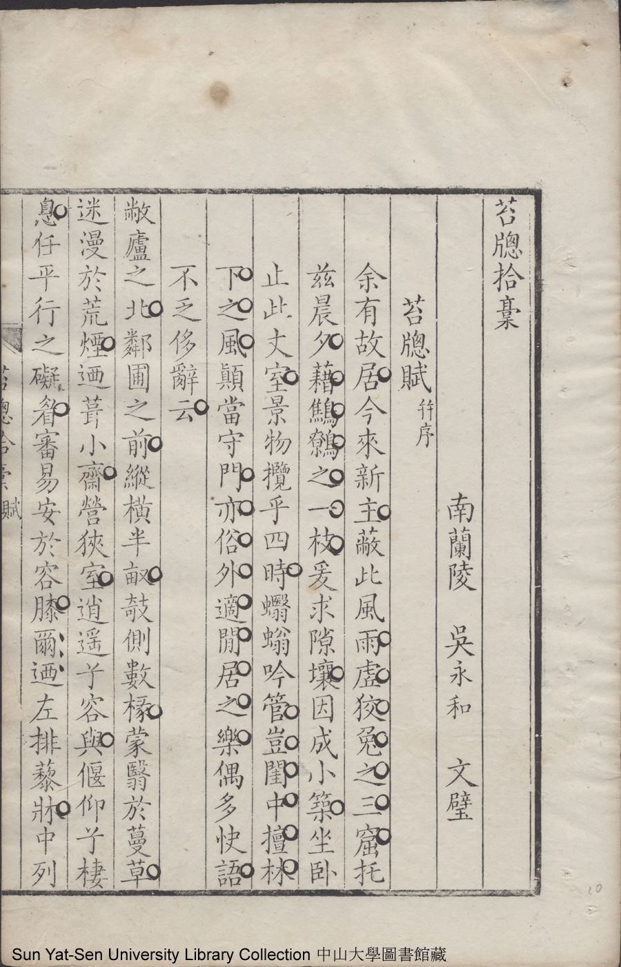 | 原書: 苔牕拾藁:一卷(清吳永和撰) |