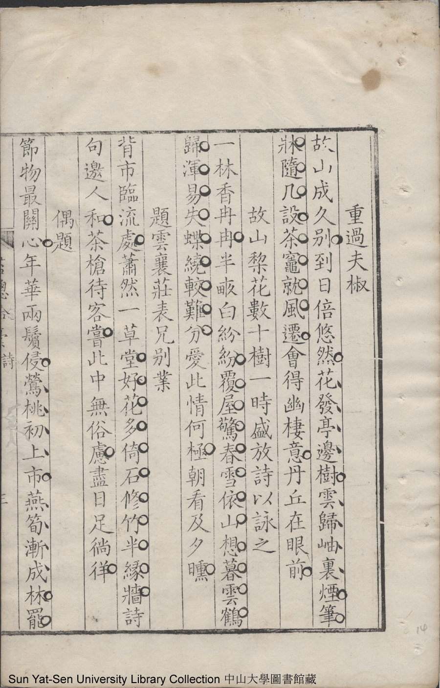 | (PRINT FRIENDLY VERSION) 苔牕拾藁:一卷(清吳永和撰)。雍正三年(1725)寫刻精刊本 ![]() 頁碼 : 1.詩.3b | 点 击 放 大 | 苔牕拾藁:一卷(清吳永和撰)。雍正三年(1725)寫刻精刊本![]() 頁碼 : 1.詩.3a | 点 击 放 大 | 返回 |