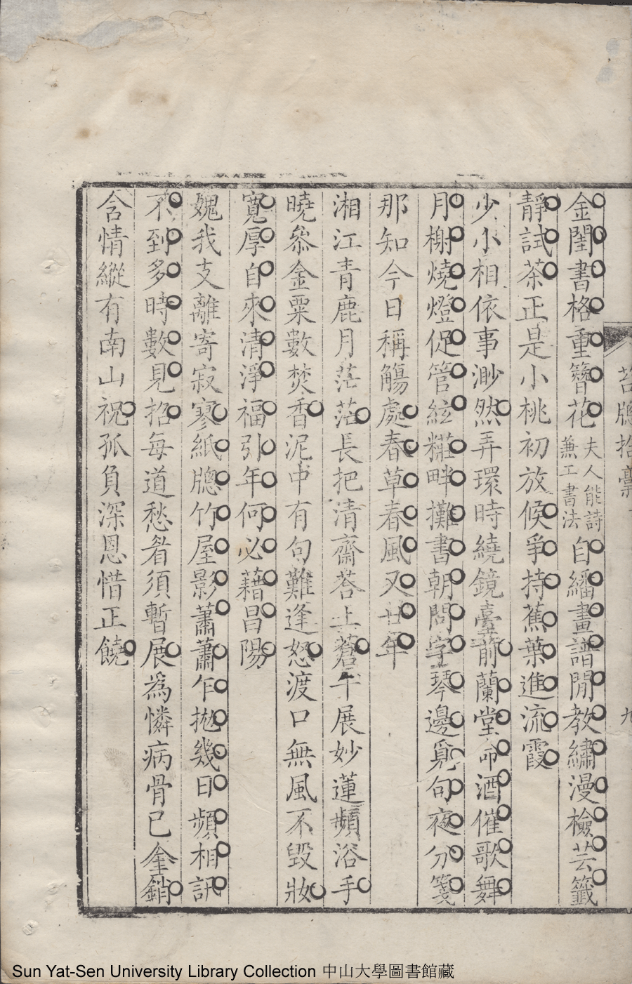 | (PRINT FRIENDLY VERSION) 苔牕拾藁:一卷(清吳永和撰)。雍正三年(1725)寫刻精刊本 ![]() 頁碼 : 1.詩.9b | 点 击 放 大 | 苔牕拾藁:一卷(清吳永和撰)。雍正三年(1725)寫刻精刊本![]() 頁碼 : 1.詩.9a | 点 击 放 大 | 返回 |