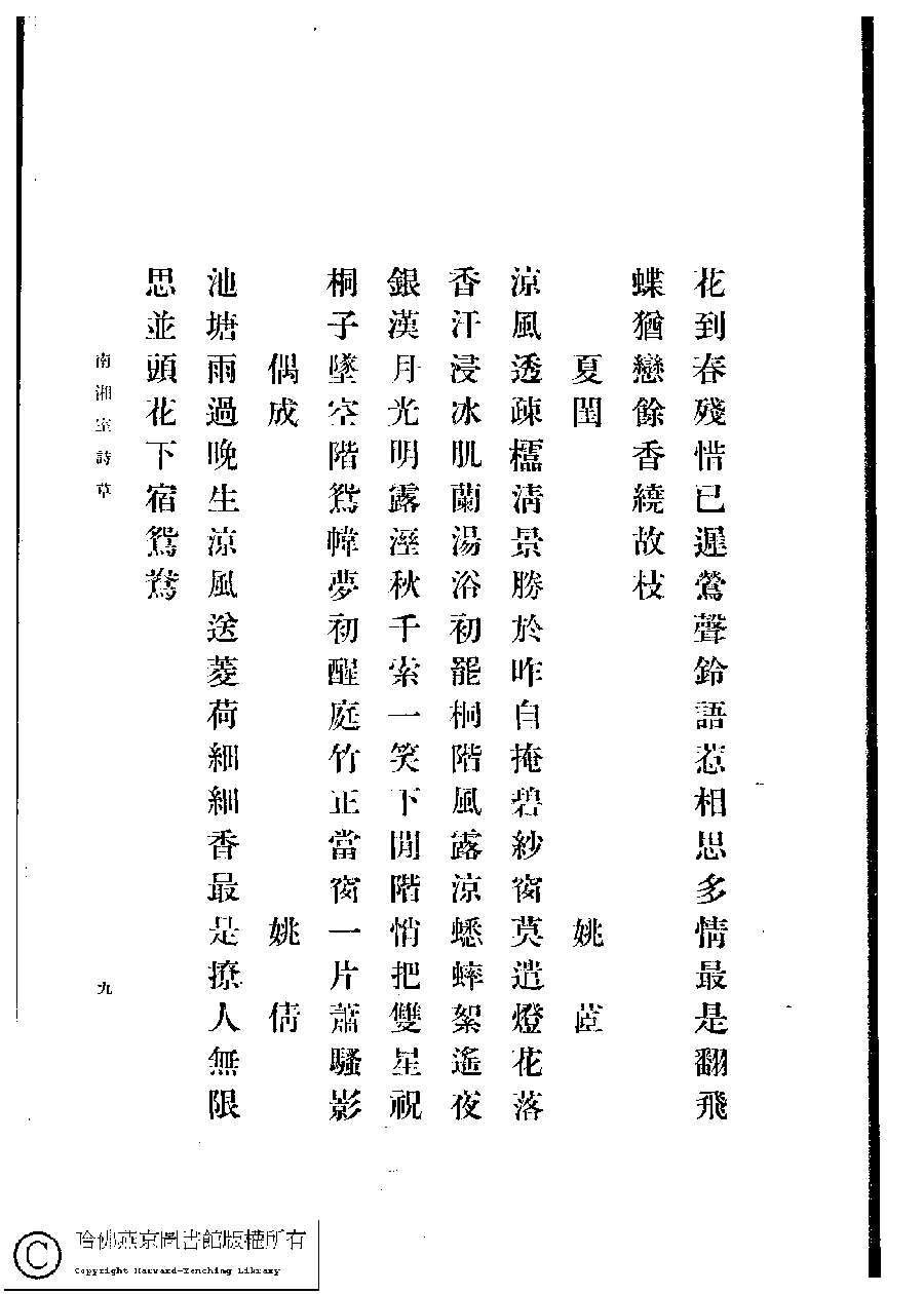 | 原書: 南湘室詩草﹕一卷﹐詩餘﹕一卷(姚倩、姚茞撰) |