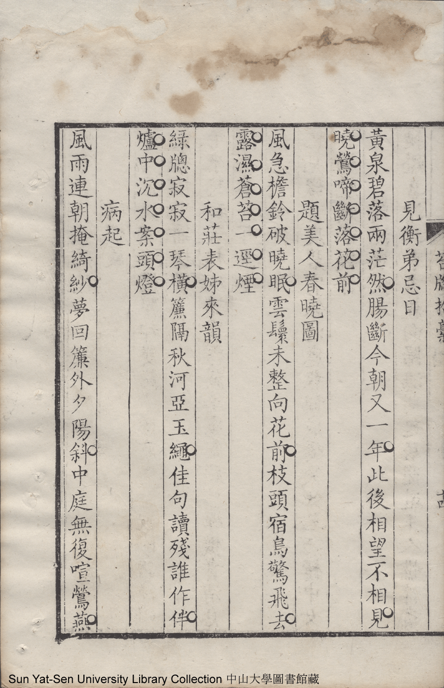 | (PRINT FRIENDLY VERSION) 苔牕拾藁:一卷(清吳永和撰)。雍正三年(1725)寫刻精刊本 ![]() 頁碼 : 1.詩.14b | 点 击 放 大 | 返回 |