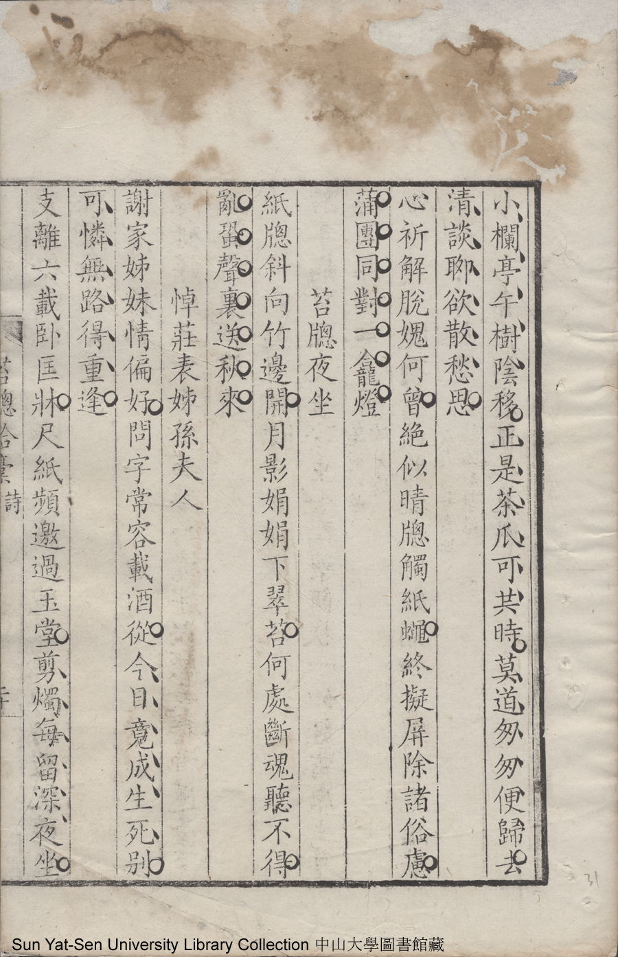 | (PRINT FRIENDLY VERSION) 苔牕拾藁:一卷(清吳永和撰)。雍正三年(1725)寫刻精刊本 ![]() 頁碼 : 1.詩.20a | 点 击 放 大 | 苔牕拾藁:一卷(清吳永和撰)。雍正三年(1725)寫刻精刊本![]() 頁碼 : 1.詩.19b | 点 击 放 大 | 返回 |