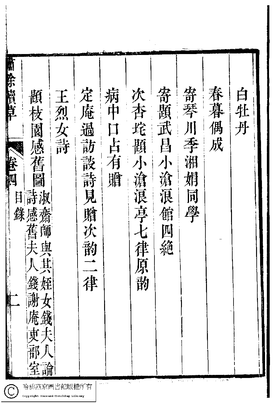 | 原書: 繡餘續草﹕五卷(清歸懋儀撰) |