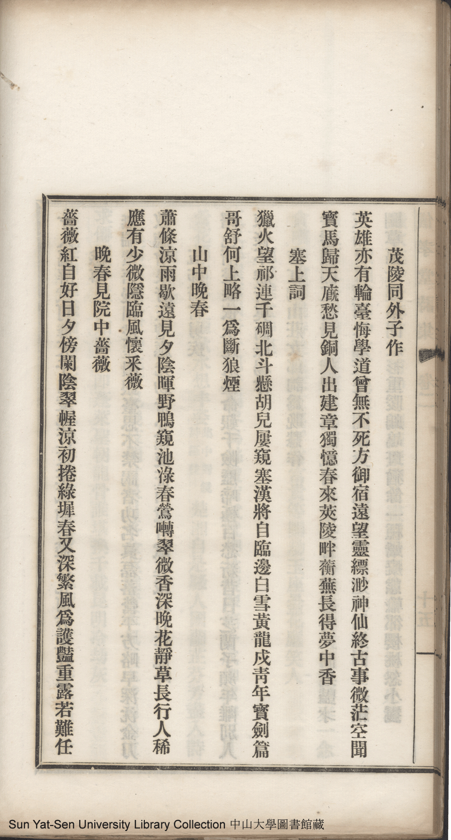 | (PRINT FRIENDLY VERSION) 儀孝堂詩集:一卷(清何承徽撰)。一九一七年鉛印本 ![]() 頁碼 : 2.15b | 点 击 放 大 | 返回 |