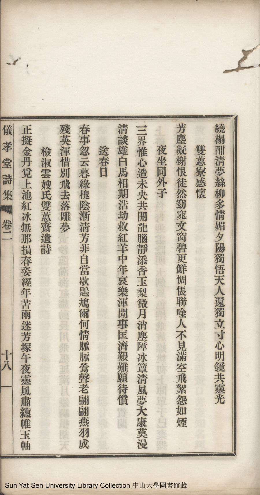 | (PRINT FRIENDLY VERSION) 儀孝堂詩集:一卷(清何承徽撰)。一九一七年鉛印本 ![]() 頁碼 : 2.18a | 点 击 放 大 | 返回 |