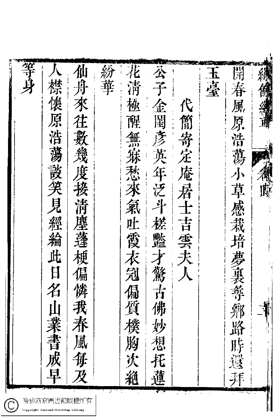 | (PRINT FRIENDLY VERSION) 繡餘續草﹕五卷(清歸懋儀撰)。清道光十二年 (1832)刻本 ![]() 頁碼 : 4.2b | 点 击 放 大 | 繡餘續草﹕五卷(清歸懋儀撰)。清道光十二年 (1832)刻本![]() 頁碼 : 4.2a | 点 击 放 大 | 返回 |