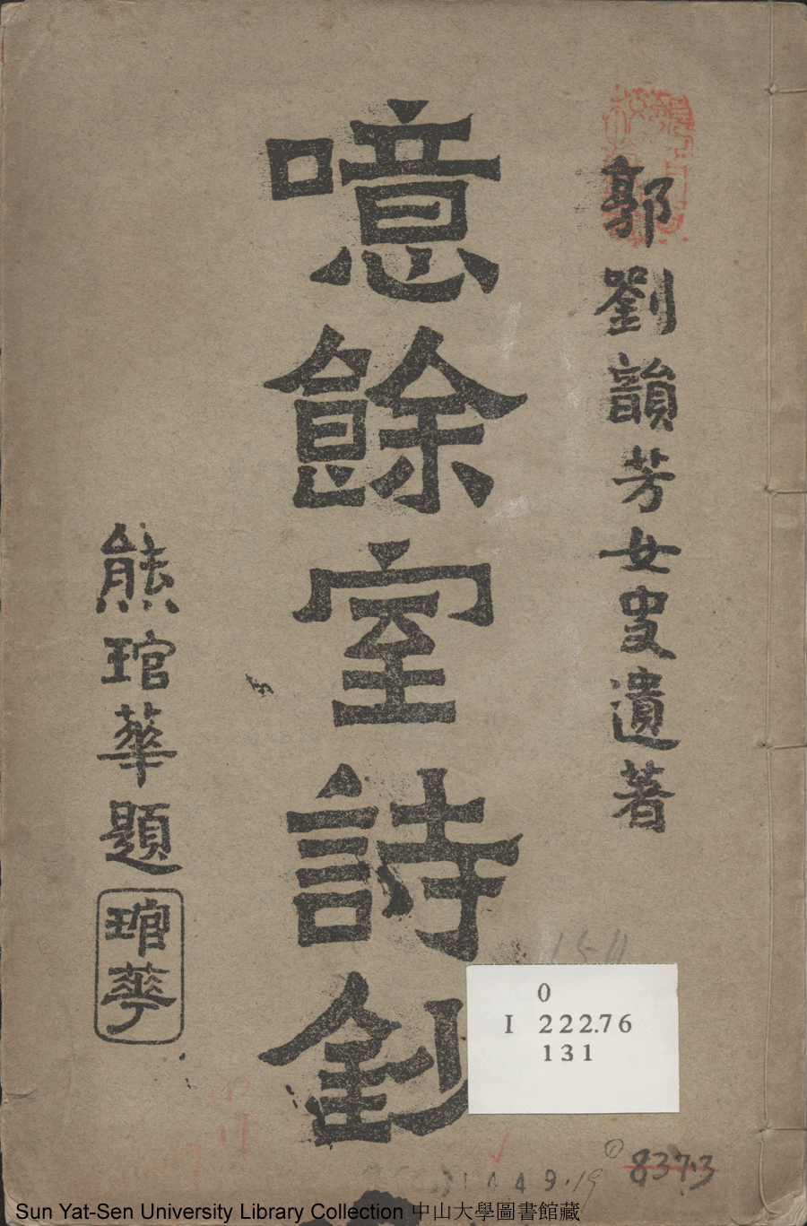 噫餘室詩鈔:一卷(清劉韻芳撰)。民國十年(1921)石印本