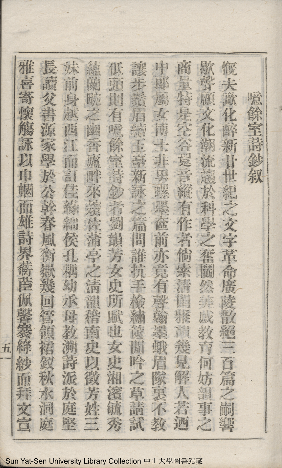 | (PRINT FRIENDLY VERSION) 增訂噫余室詩鈔:一卷(清劉韻芳撰)。民國十一年(1922)鉛印本 ![]() 頁碼 : 序5b | 点 击 放 大 | 增訂噫余室詩鈔:一卷(清劉韻芳撰)。民國十一年(1922)鉛印本![]() 頁碼 : 序5a | 点 击 放 大 | 返回 |