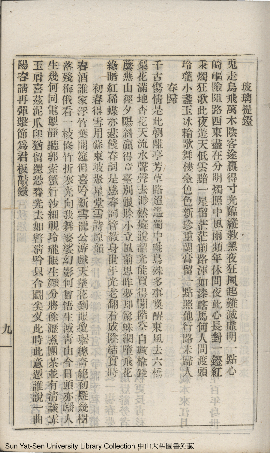 | (PRINT FRIENDLY VERSION) 增訂噫余室詩鈔:一卷(清劉韻芳撰)。民國十一年(1922)鉛印本 ![]() 頁碼 : 增訂噫余室詩鈔9a | 点 击 放 大 | 返回 |