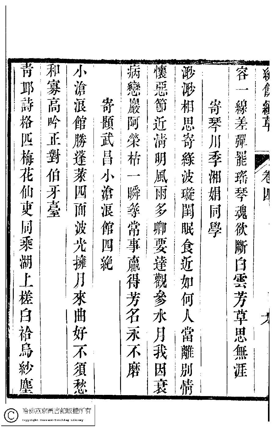 | 原書: 繡餘續草﹕五卷(清歸懋儀撰) |