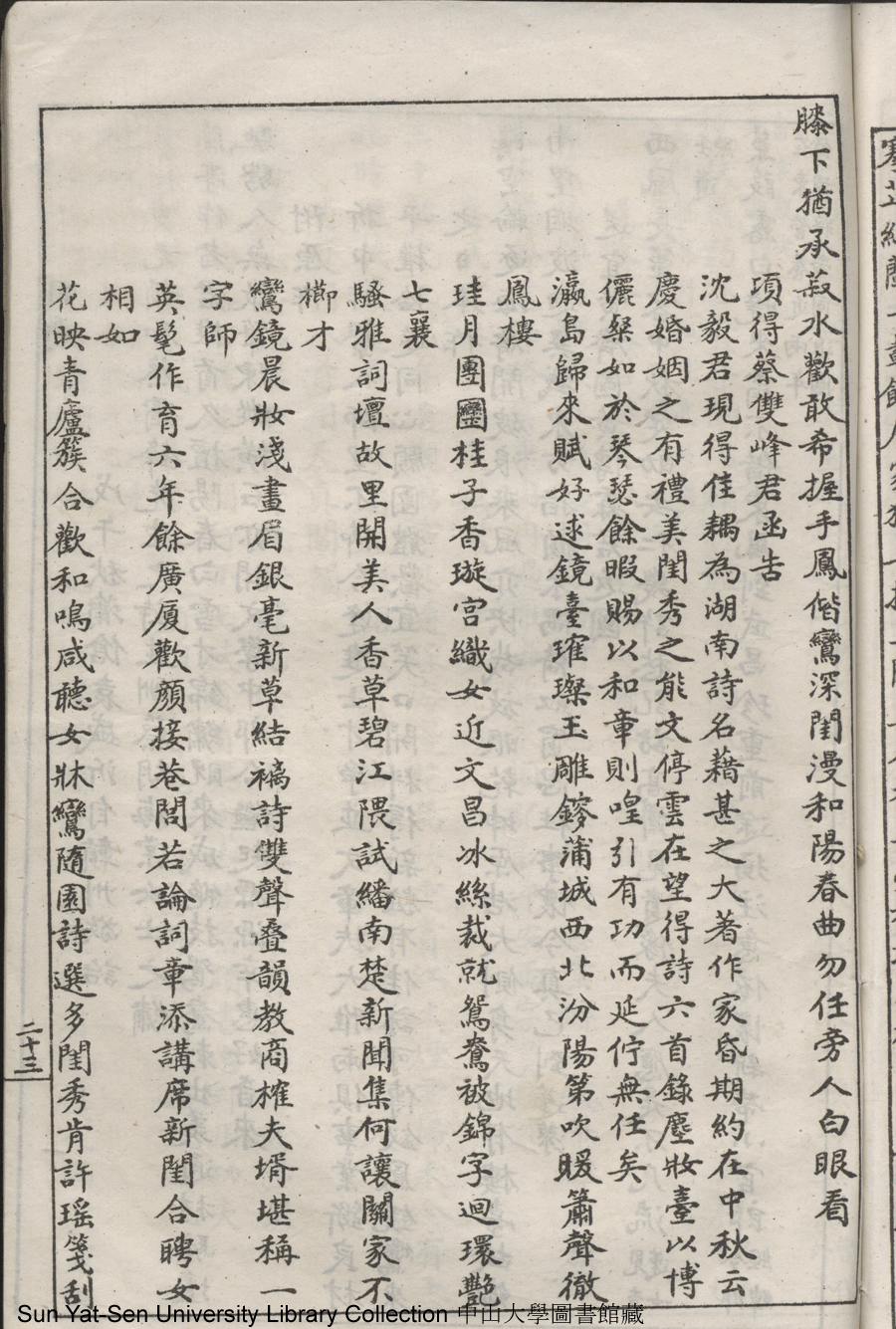 | (PRINT FRIENDLY VERSION) 噫餘室詩鈔:一卷(清劉韻芳撰)。民國十年(1921)石印本 ![]() 頁碼 : 噫余室詩鈔23a | 点 击 放 大 | 噫餘室詩鈔:一卷(清劉韻芳撰)。民國十年(1921)石印本![]() 頁碼 : 噫余室詩鈔22b | 点 击 放 大 | 返回 |