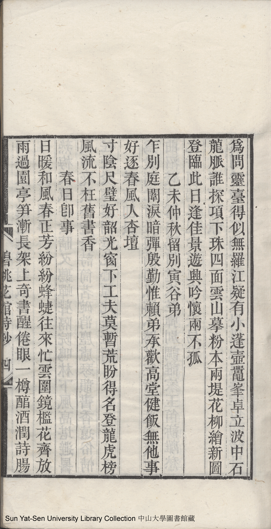 | (PRINT FRIENDLY VERSION) 碧桃花館詩鈔:一卷, 繡餘閣詩草:一卷(清石錦繡撰)。同治五年(1866)刻本 ![]() 頁碼 : 1.4a | 点 击 放 大 | 返回 |