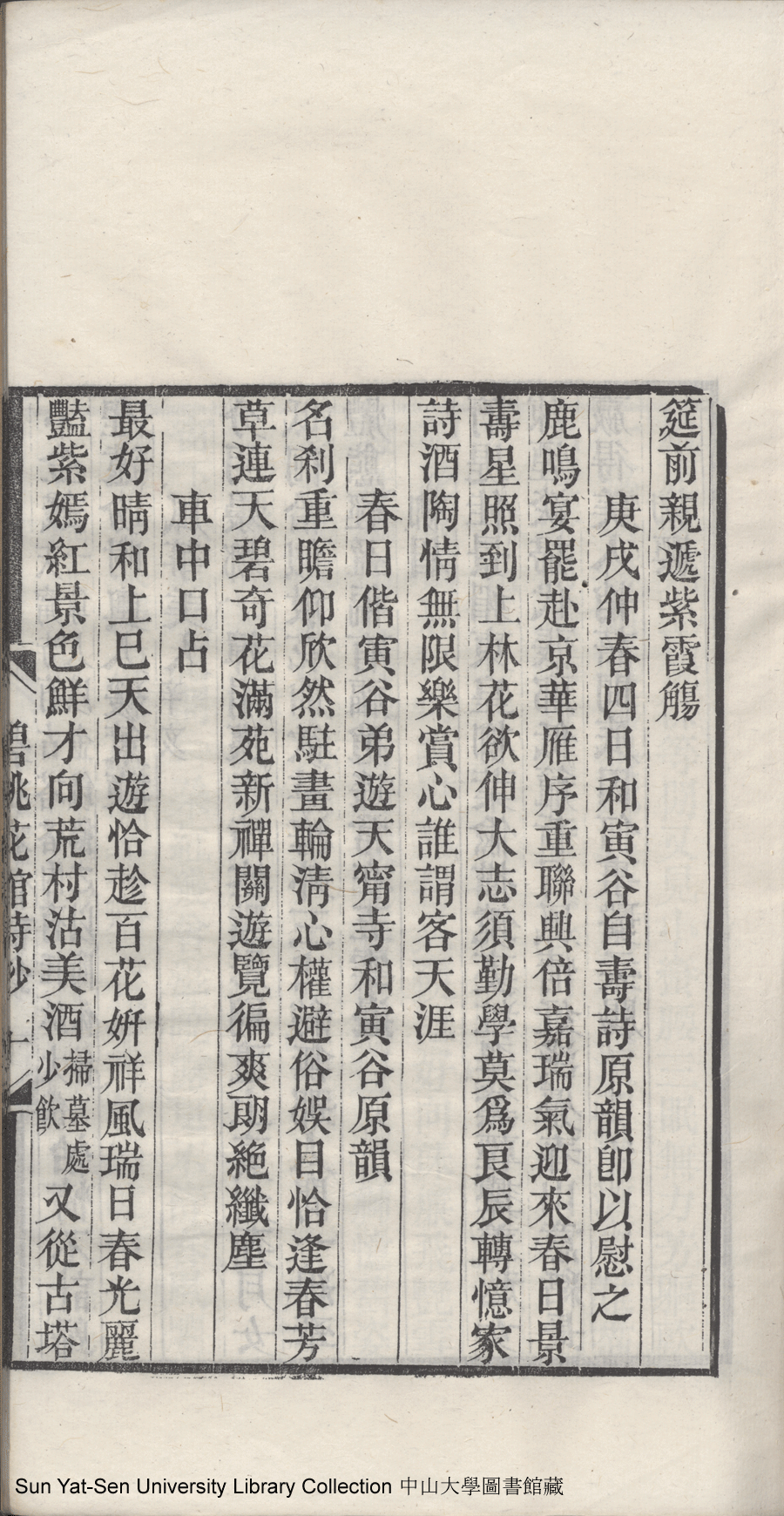| (PRINT FRIENDLY VERSION) 碧桃花館詩鈔:一卷, 繡餘閣詩草:一卷(清石錦繡撰)。同治五年(1866)刻本 ![]() 頁碼 : 1.10a | 点 击 放 大 | 碧桃花館詩鈔:一卷, 繡餘閣詩草:一卷(清石錦繡撰)。同治五年(1866)刻本![]() 頁碼 : 1.9b | 点 击 放 大 | 返回 |