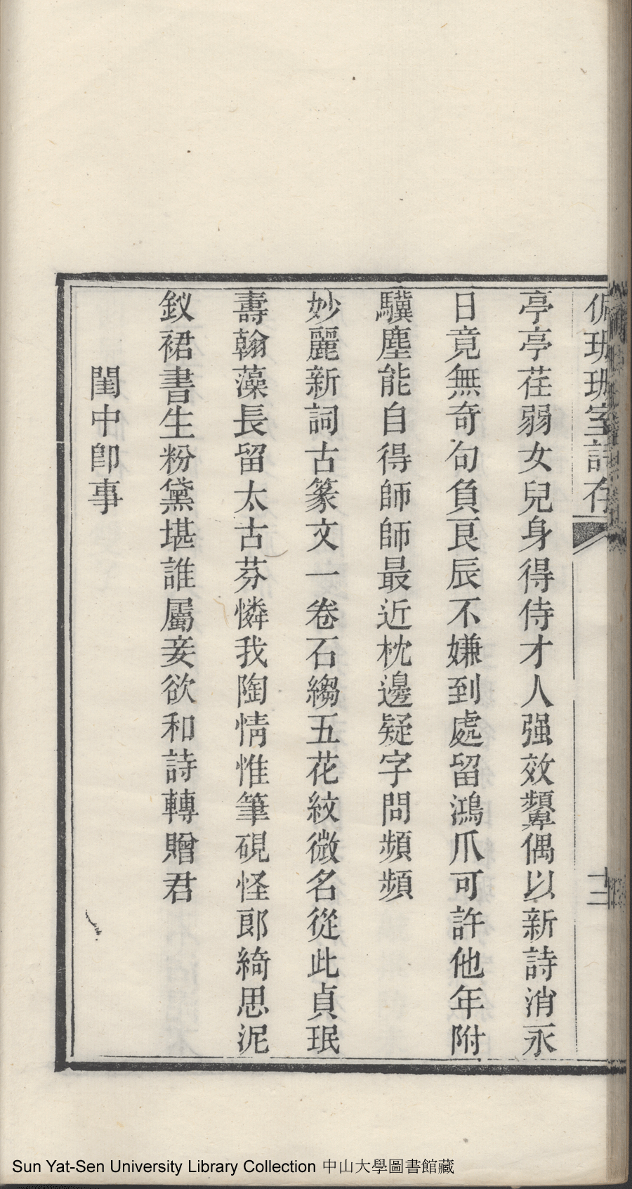 | (PRINT FRIENDLY VERSION) 佩珊珊室詩存:一卷(清王紉佩撰)。光緒十九年(1893)刊本 ![]() 頁碼 : 詩存13b | 点 击 放 大 | 佩珊珊室詩存:一卷(清王紉佩撰)。光緒十九年(1893)刊本![]() 頁碼 : 詩存13a | 点 击 放 大 | 佩珊珊室詩存:一卷(清王紉佩撰)。光緒十九年(1893)刊本![]() 頁碼 : 詩存12b | 点 击 放 大 | 返回 |