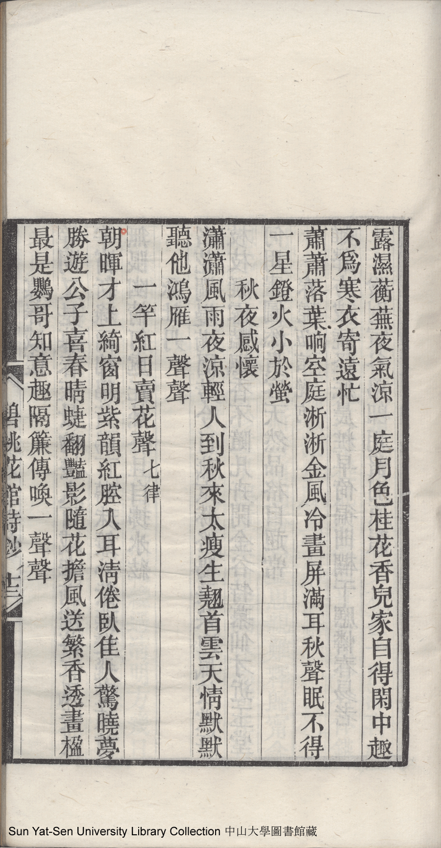 | (PRINT FRIENDLY VERSION) 碧桃花館詩鈔:一卷, 繡餘閣詩草:一卷(清石錦繡撰)。同治五年(1866)刻本 ![]() 頁碼 : 1.13a | 点 击 放 大 | 返回 |