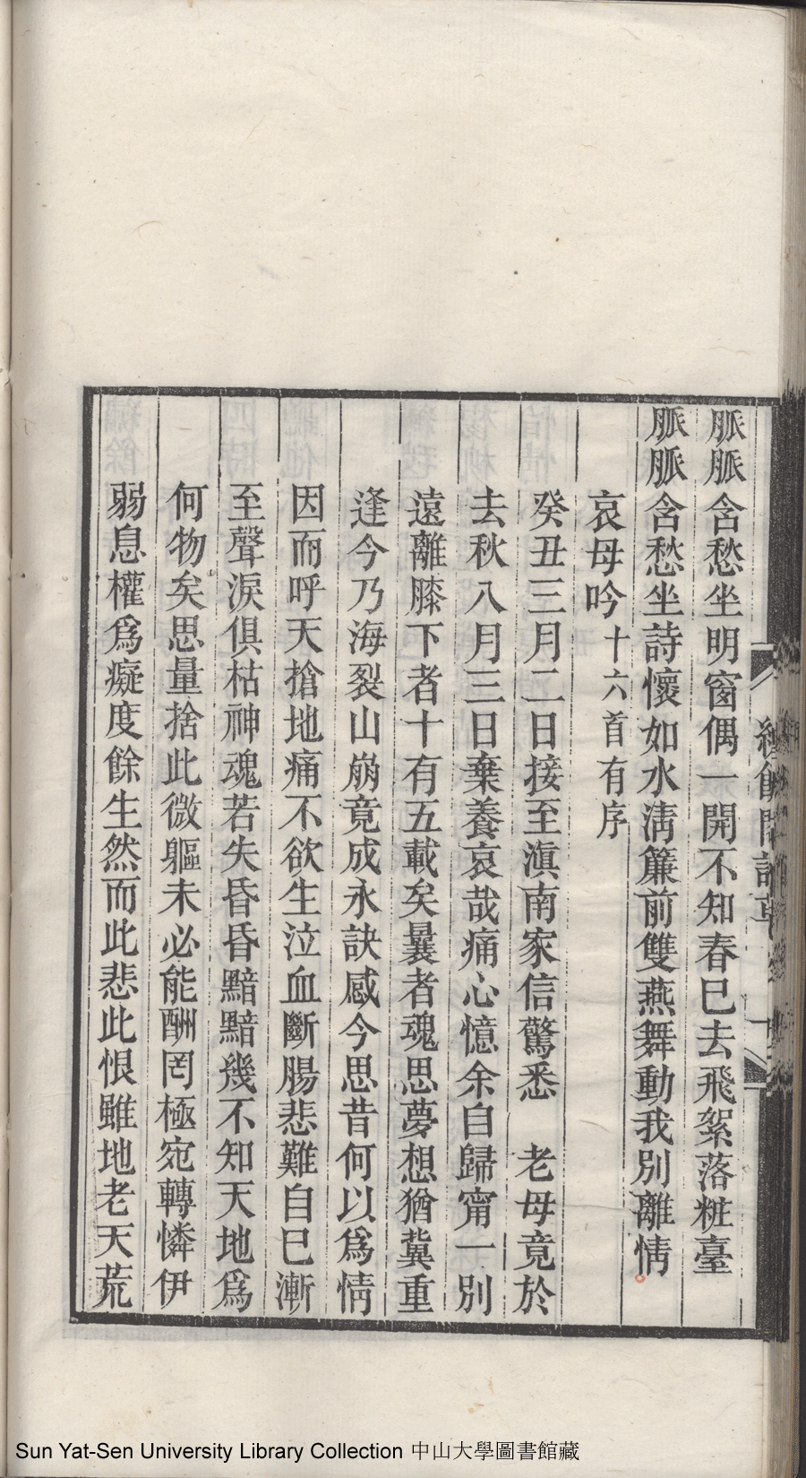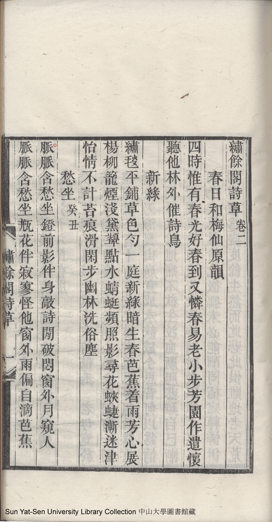 | (PRINT FRIENDLY VERSION) 碧桃花館詩鈔:一卷, 繡餘閣詩草:一卷(清石錦繡撰)。同治五年(1866)刻本 ![]() 頁碼 : 2.1b | 点 击 放 大 | 碧桃花館詩鈔:一卷, 繡餘閣詩草:一卷(清石錦繡撰)。同治五年(1866)刻本![]() 頁碼 : 2.1a | 点 击 放 大 | 返回 |