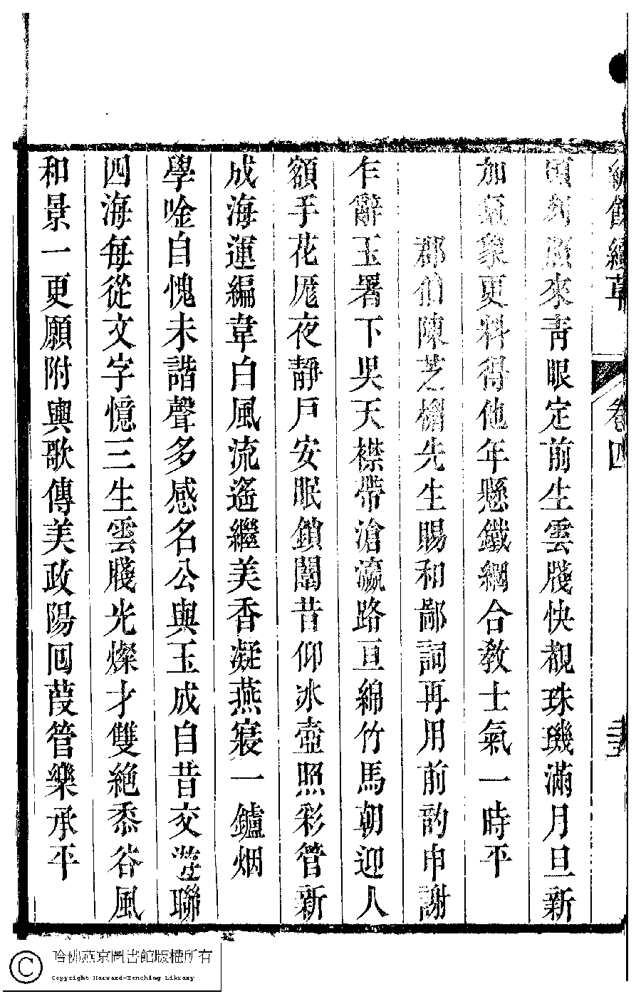 | (PRINT FRIENDLY VERSION) 繡餘續草﹕五卷(清歸懋儀撰)。清道光十二年 (1832)刻本 ![]() 頁碼 : 4.25b | 点 击 放 大 | 返回 |