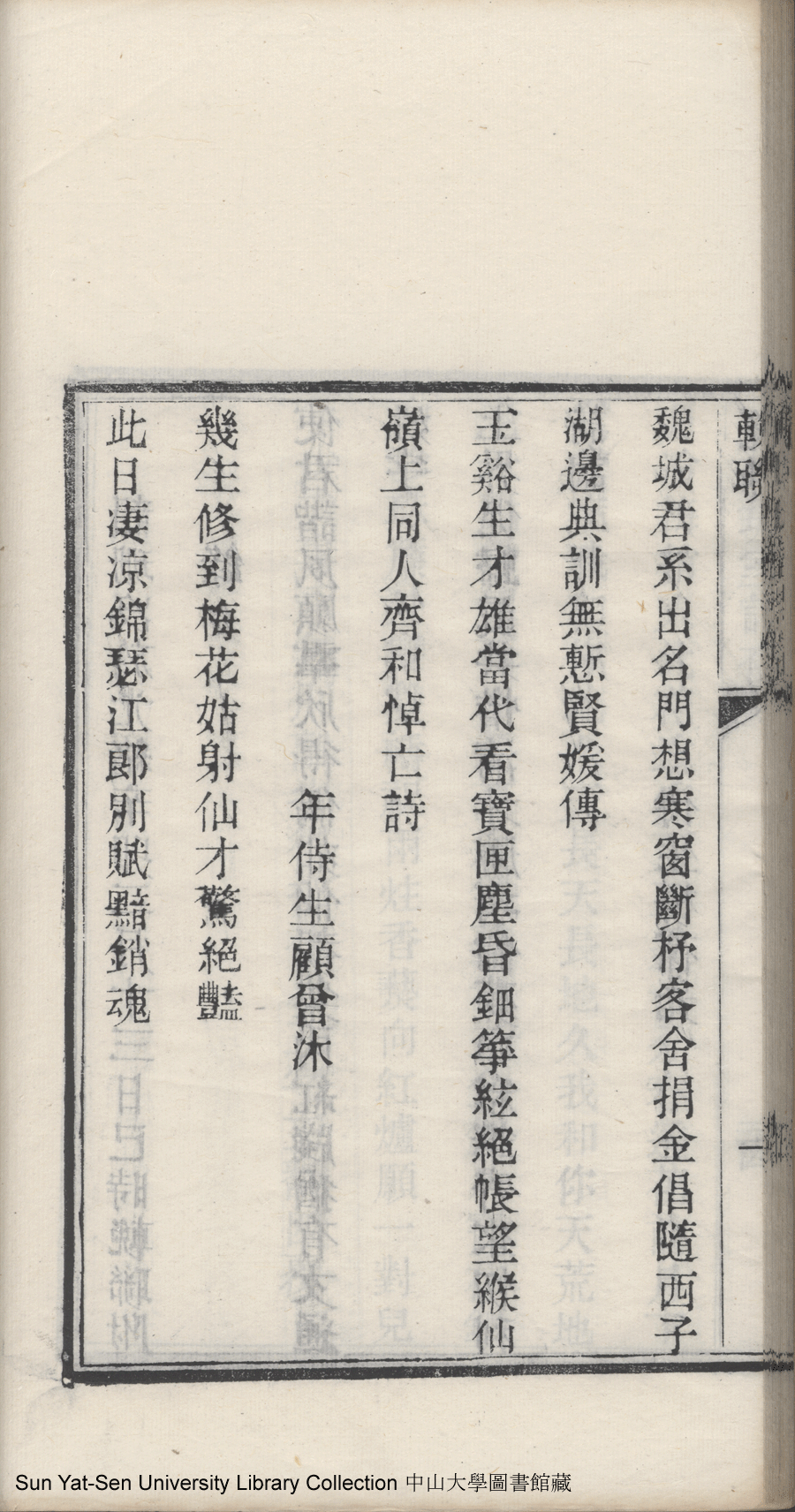 | (PRINT FRIENDLY VERSION) 佩珊珊室詩存:一卷(清王紉佩撰)。光緒十九年(1893)刊本 ![]() 頁碼 : 輓聯1b | 点 击 放 大 | 返回 |