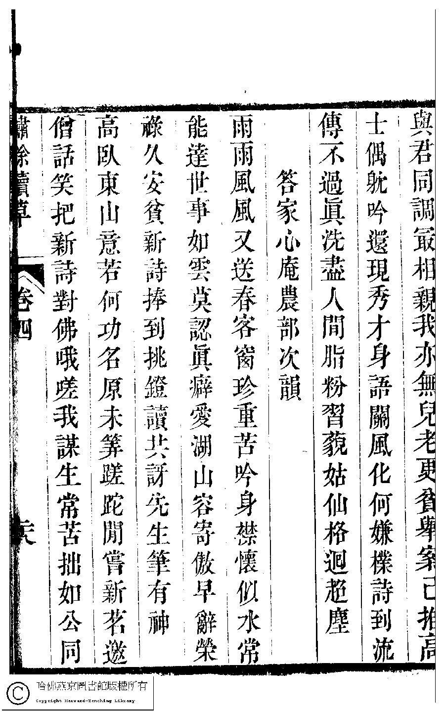 詩詞 [答家心庵農部次韻(二首)]