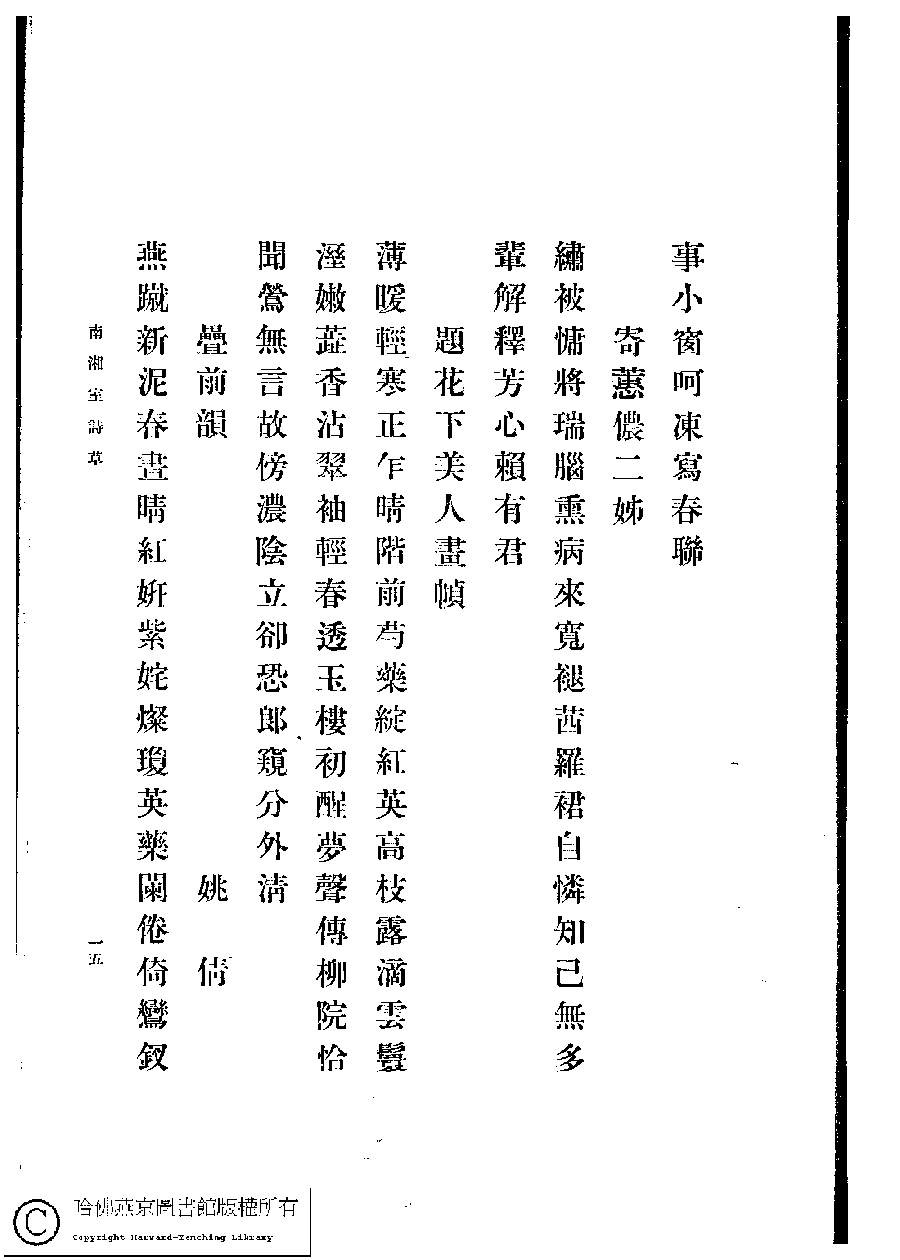 | 原書: 南湘室詩草﹕一卷﹐詩餘﹕一卷(姚倩、姚茞撰) |