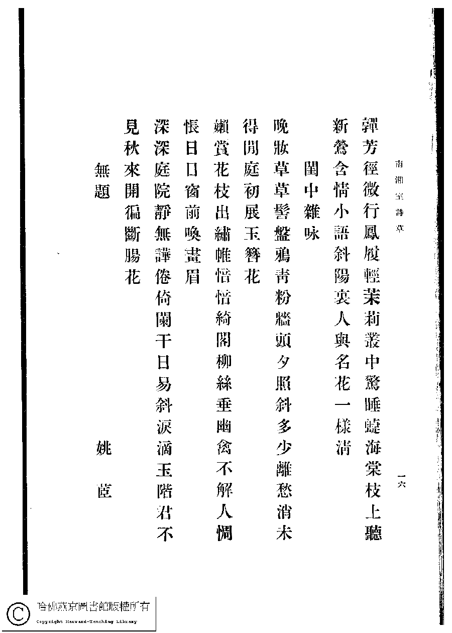 | 原書: 南湘室詩草﹕一卷﹐詩餘﹕一卷(姚倩、姚茞撰) |