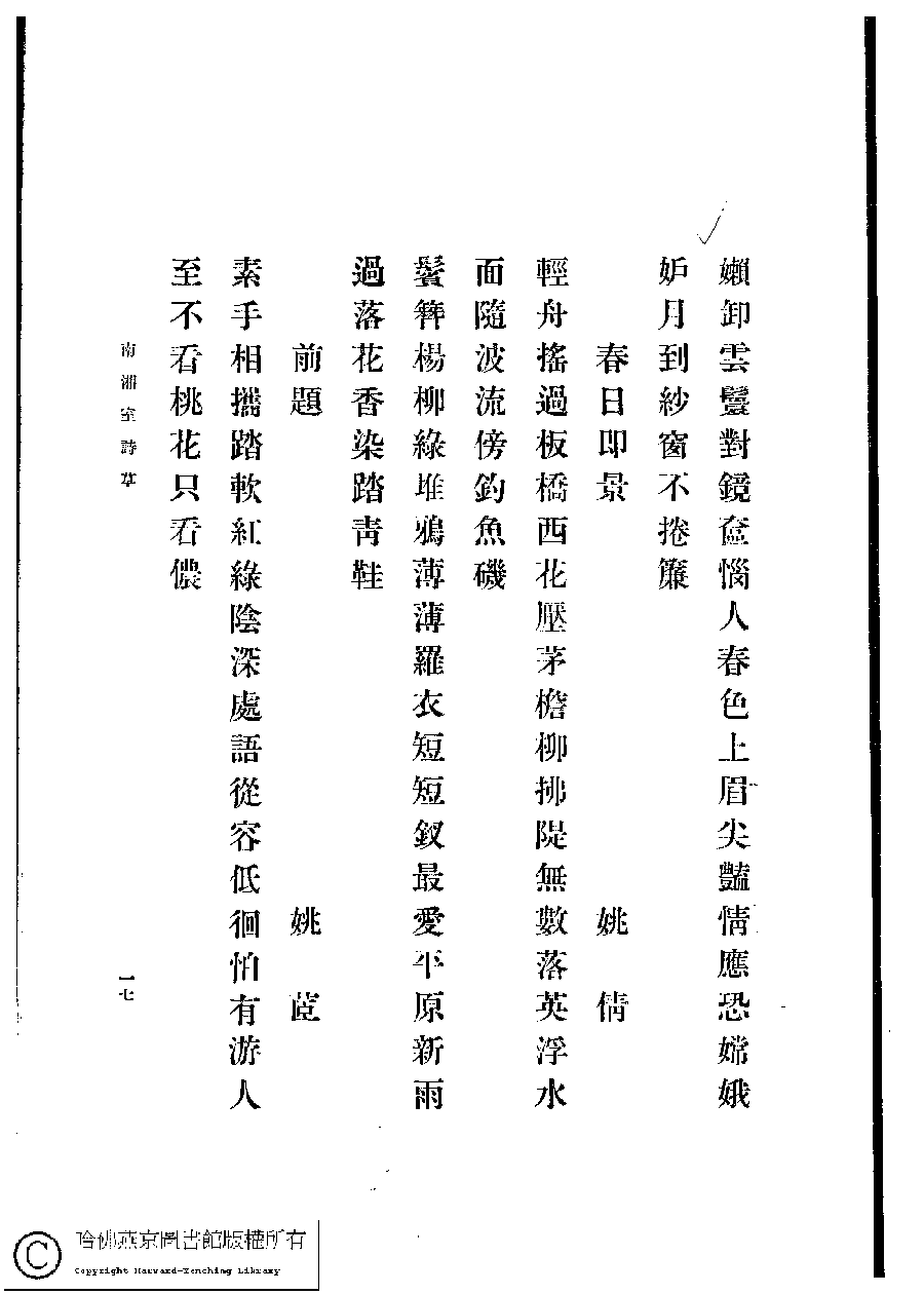 | 原書: 南湘室詩草﹕一卷﹐詩餘﹕一卷(姚倩、姚茞撰) |