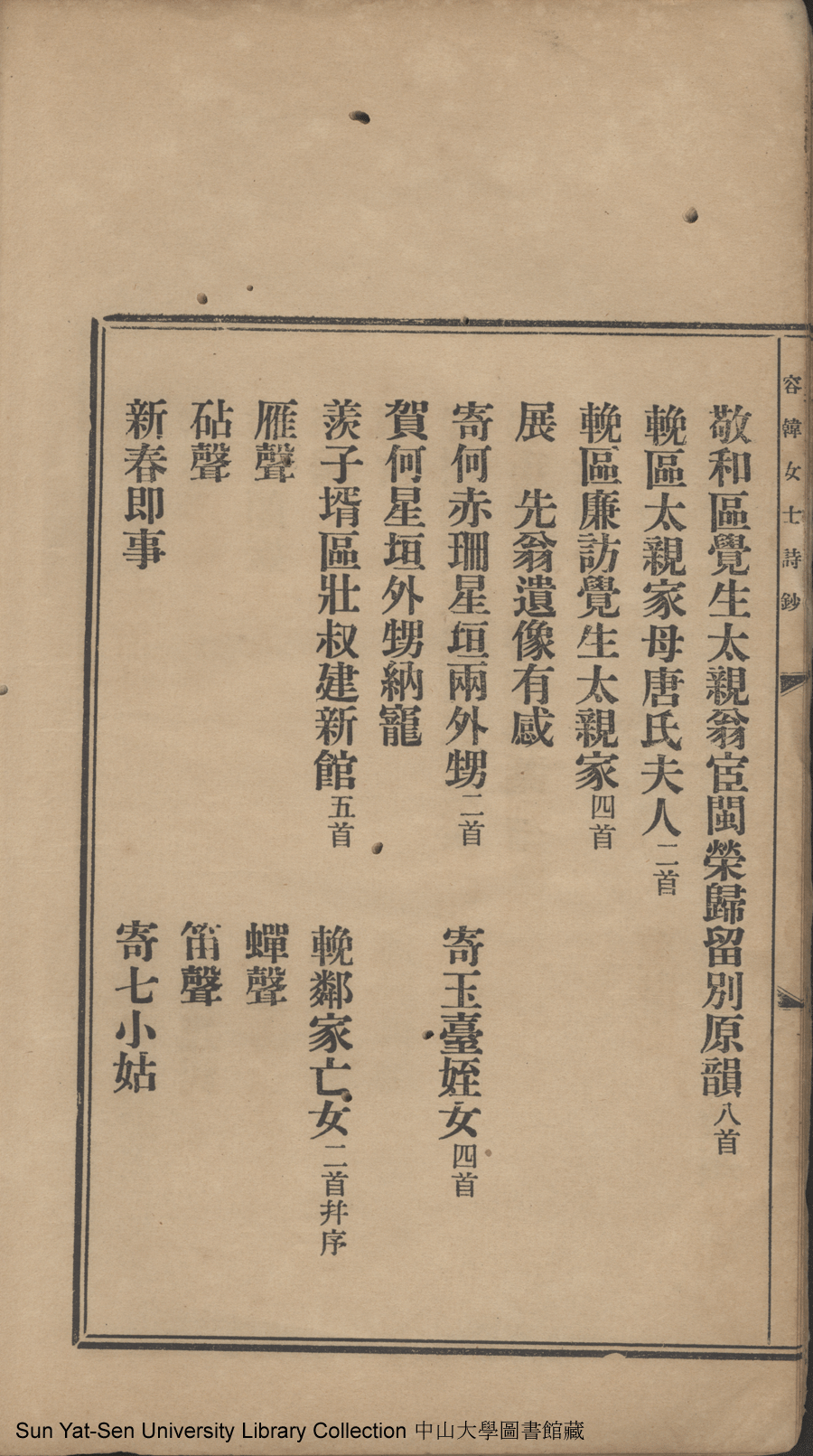 詩詞 [容韓女士詩鈔目錄]