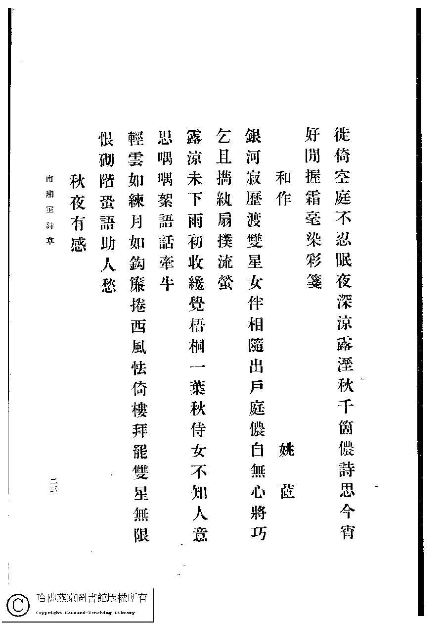 | 原書: 南湘室詩草﹕一卷﹐詩餘﹕一卷(姚倩、姚茞撰) |