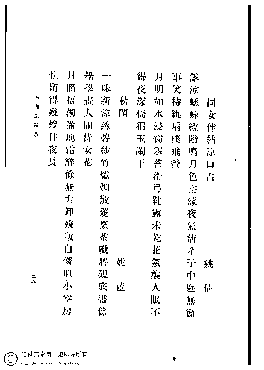| 原書: 南湘室詩草﹕一卷﹐詩餘﹕一卷(姚倩、姚茞撰) |