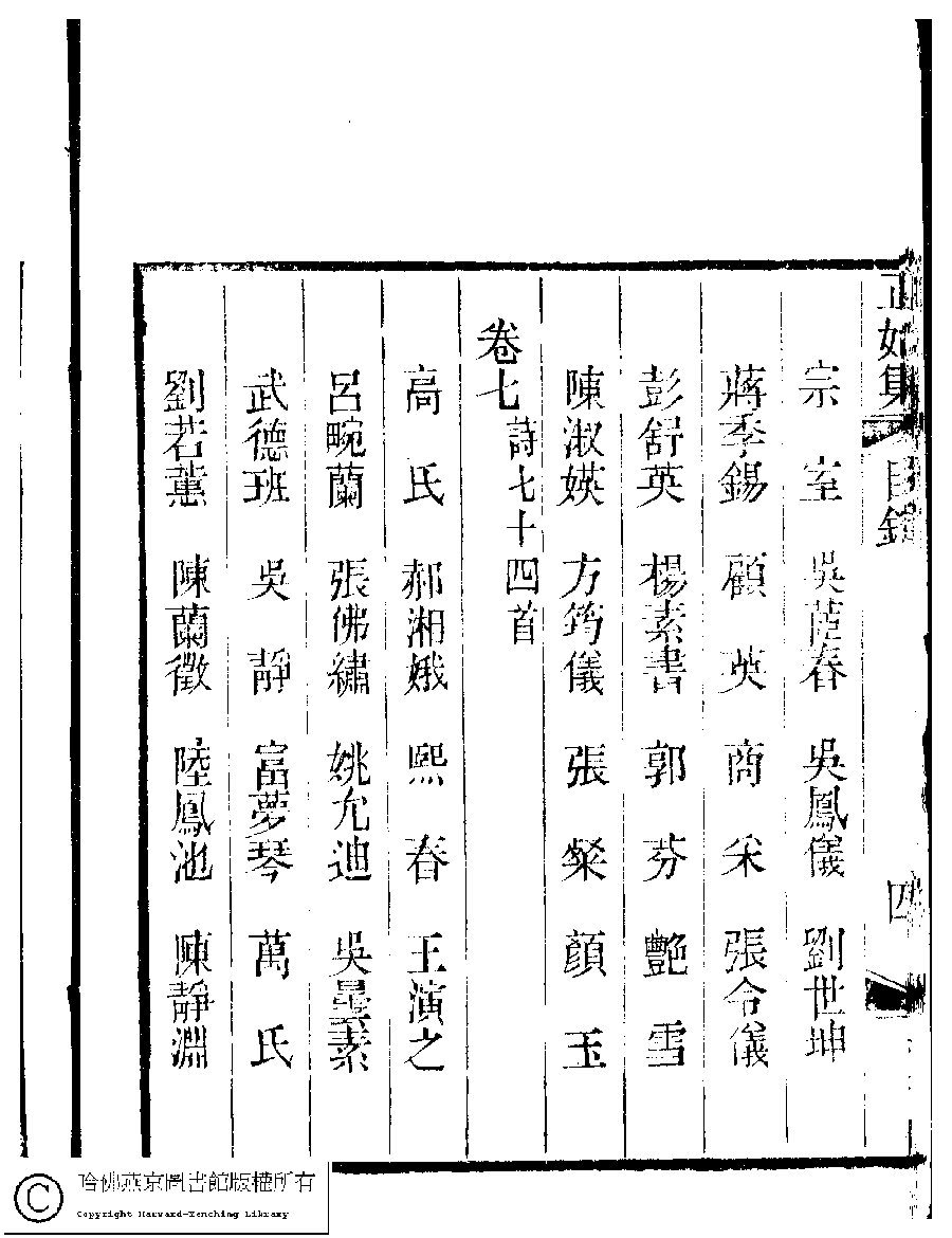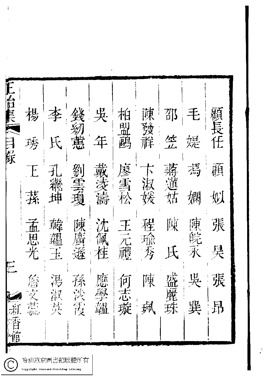 | (PRINT FRIENDLY VERSION) 國朝閨秀正始集﹕二十卷﹐附錄﹕一卷﹐補遺﹕一卷﹐又附題詞﹕一卷(清惲珠輯) ![]() 頁碼 : 目錄.2b | 点 击 放 大 | 國朝閨秀正始集﹕二十卷﹐附錄﹕一卷﹐補遺﹕一卷﹐又附題詞﹕一卷(清惲珠輯)![]() 頁碼 : 目錄.2a | 点 击 放 大 | 國朝閨秀正始集﹕二十卷﹐附錄﹕一卷﹐補遺﹕一卷﹐又附題詞﹕一卷(清惲珠輯)![]() 頁碼 : 目錄.1b | 点 击 放 大 | 國朝閨秀正始集﹕二十卷﹐附錄﹕一卷﹐補遺﹕一卷﹐又附題詞﹕一卷(清惲珠輯)![]() 頁碼 : 目錄.1a | 点 击 放 大 |