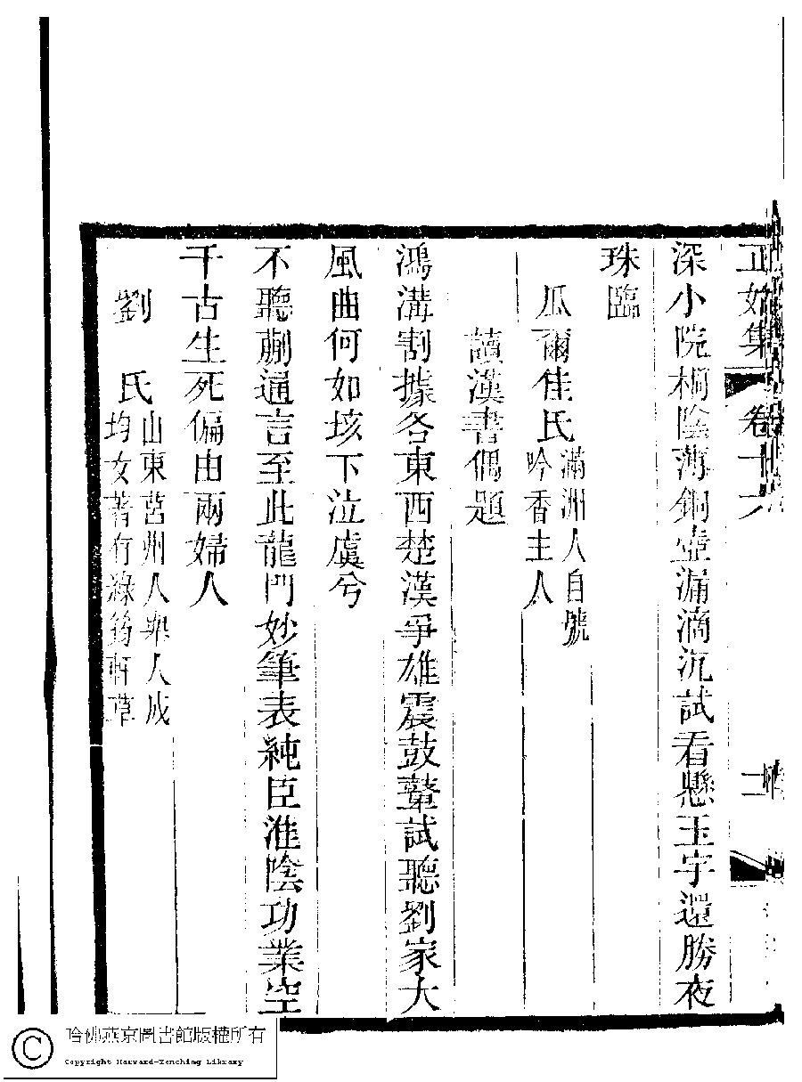 | 原書: 國朝閨秀正始集﹕二十卷﹐附錄﹕一卷﹐補遺﹕一卷﹐又附題詞﹕一卷(清惲珠輯) |