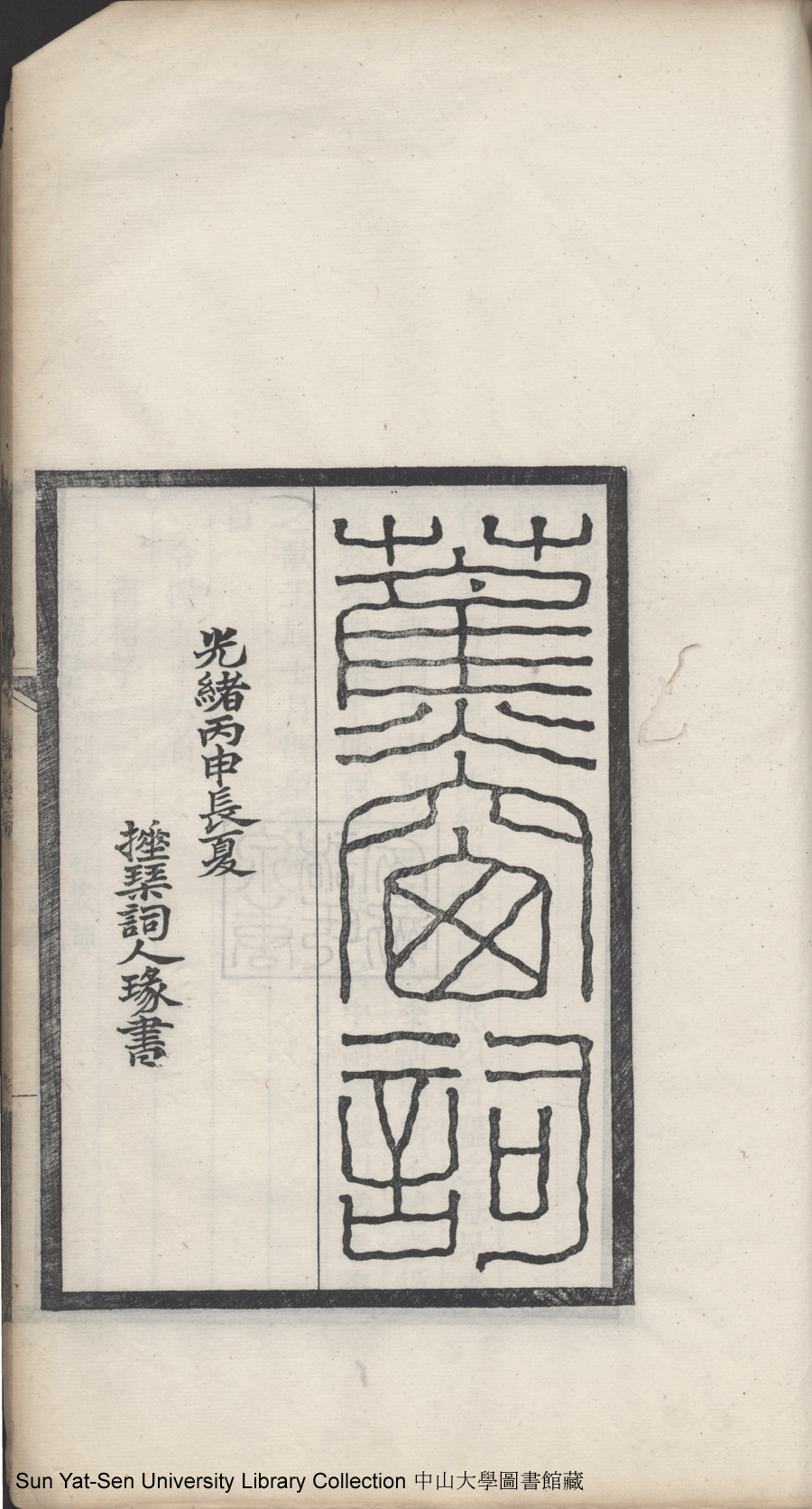 | (PRINT FRIENDLY VERSION) 清足居集:一卷, 蕉窗詞:一卷(清鄧瑜撰)。光緒二十一年乙未(1895)泉唐諸氏家刻本 ![]() 頁碼 : 內封.a | 点 击 放 大 | 返回 |