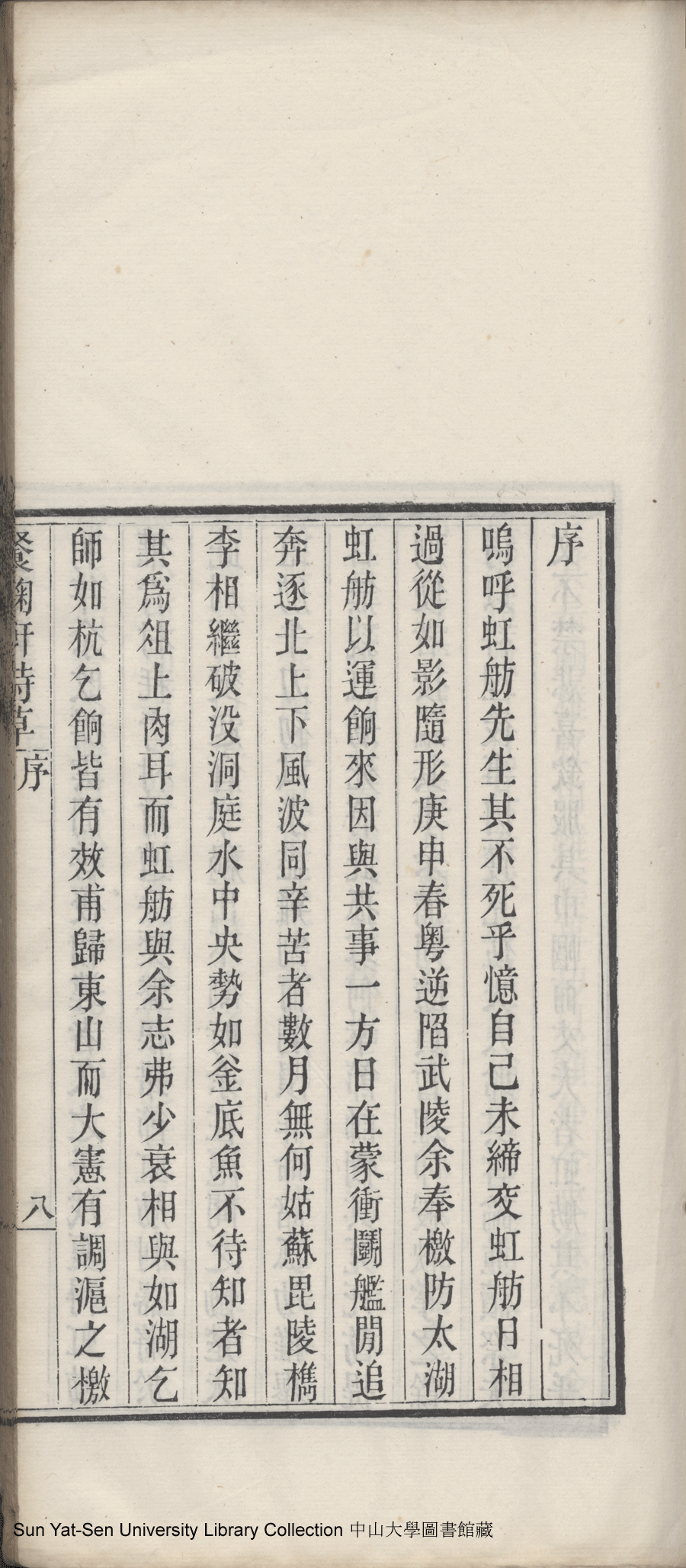 | (PRINT FRIENDLY VERSION) 餐菊軒詩草: 一卷(清伍淡如撰)。光緒十四年戊子(1888)重刊本 ![]() 頁碼 : 序9b | 点 击 放 大 | 餐菊軒詩草: 一卷(清伍淡如撰)。光緒十四年戊子(1888)重刊本![]() 頁碼 : 序9a | 点 击 放 大 | 餐菊軒詩草: 一卷(清伍淡如撰)。光緒十四年戊子(1888)重刊本![]() 頁碼 : 序8b | 点 击 放 大 | 餐菊軒詩草: 一卷(清伍淡如撰)。光緒十四年戊子(1888)重刊本![]() 頁碼 : 序8a | 点 击 放 大 | 返回 |