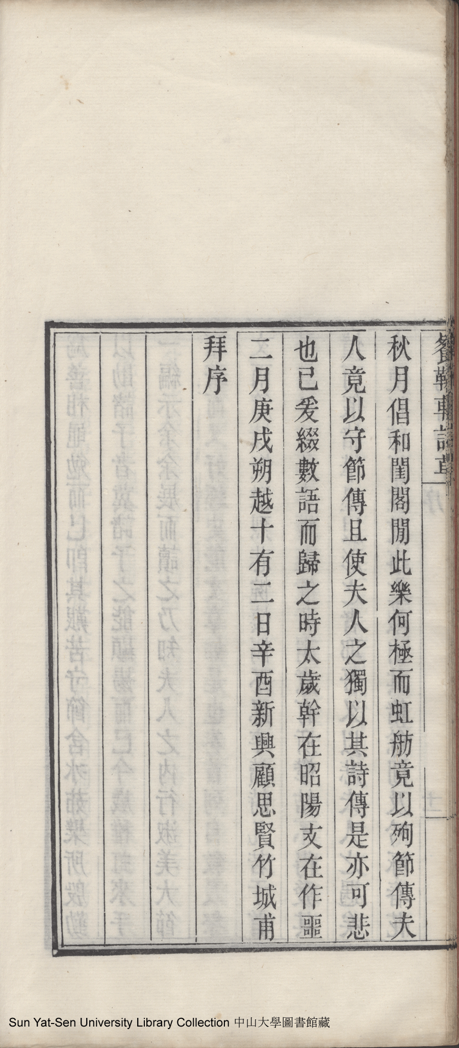| (PRINT FRIENDLY VERSION) 餐菊軒詩草: 一卷(清伍淡如撰)。光緒十四年戊子(1888)重刊本 ![]() 頁碼 : 序11b | 点 击 放 大 | 餐菊軒詩草: 一卷(清伍淡如撰)。光緒十四年戊子(1888)重刊本![]() 頁碼 : 序11a | 点 击 放 大 | 餐菊軒詩草: 一卷(清伍淡如撰)。光緒十四年戊子(1888)重刊本![]() 頁碼 : 序10b | 点 击 放 大 | 餐菊軒詩草: 一卷(清伍淡如撰)。光緒十四年戊子(1888)重刊本![]() 頁碼 : 序10a | 点 击 放 大 | 返回 |
