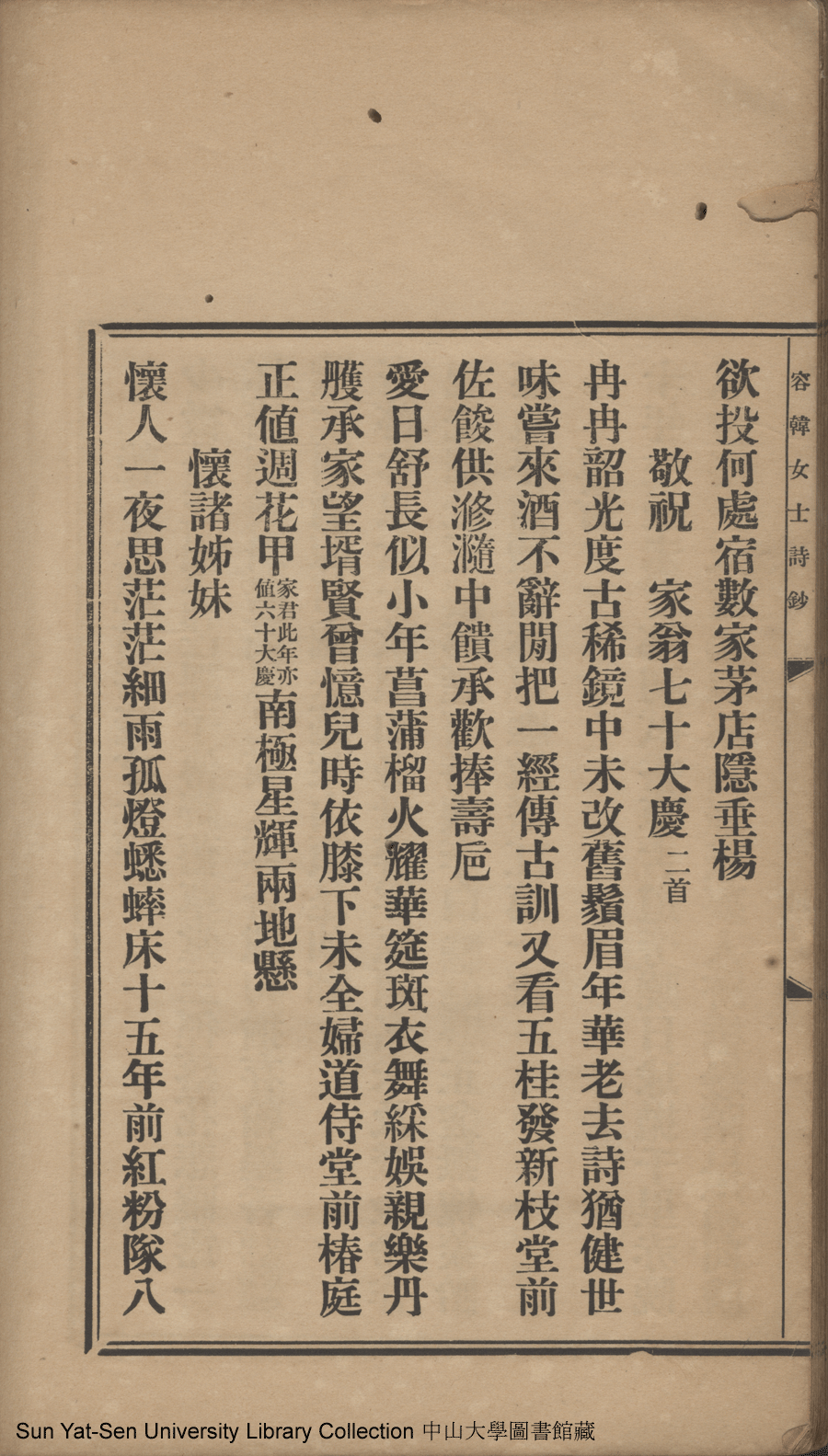 | 原書: 容韓女士詩鈔:一卷(清韓綺如撰) |