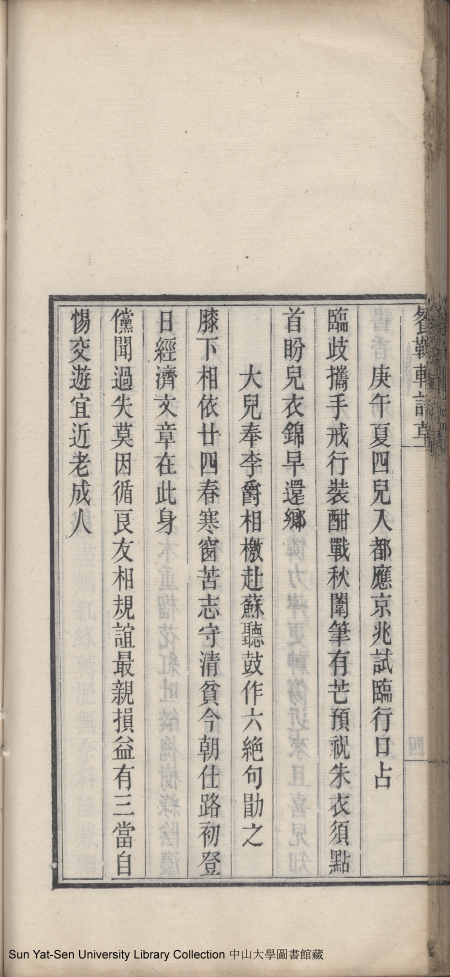 | (PRINT FRIENDLY VERSION) 餐菊軒詩草: 一卷(清伍淡如撰)。光緒十四年戊子(1888)重刊本 ![]() 頁碼 : 詩草4b | 点 击 放 大 | 返回 |