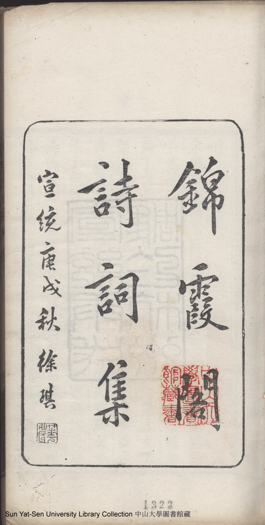 | (PRINT FRIENDLY VERSION) 錦霞閣詩集:五卷,詞集:一卷(清包蘭瑛撰)。宣統二年庚戌(1910)刊本 ![]() 頁碼 : 徐題內封b | 点 击 放 大 | 錦霞閣詩集:五卷,詞集:一卷(清包蘭瑛撰)。宣統二年庚戌(1910)刊本![]() 頁碼 : 徐題內封a | 点 击 放 大 | 返回 |