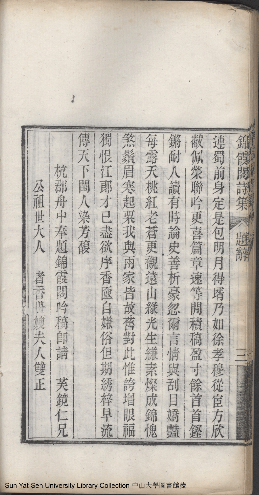 | (PRINT FRIENDLY VERSION) 錦霞閣詩集:五卷,詞集:一卷(清包蘭瑛撰)。宣統二年庚戌(1910)刊本 ![]() 頁碼 : 題辭3b | 点 击 放 大 | 錦霞閣詩集:五卷,詞集:一卷(清包蘭瑛撰)。宣統二年庚戌(1910)刊本![]() 頁碼 : 題辭3a | 点 击 放 大 | 返回 |