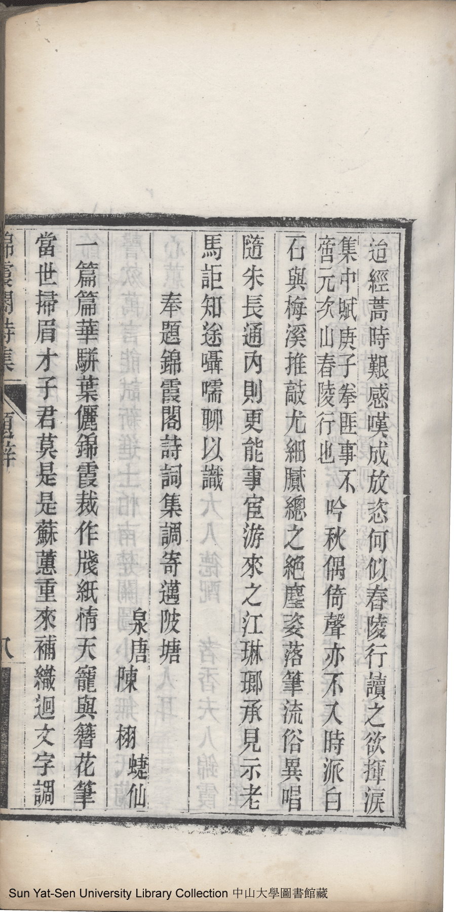 | (PRINT FRIENDLY VERSION) 錦霞閣詩集:五卷,詞集:一卷(清包蘭瑛撰)。宣統二年庚戌(1910)刊本 ![]() 頁碼 : 題辭8a | 点 击 放 大 | 錦霞閣詩集:五卷,詞集:一卷(清包蘭瑛撰)。宣統二年庚戌(1910)刊本![]() 頁碼 : 題辭7b | 点 击 放 大 | 返回 |
