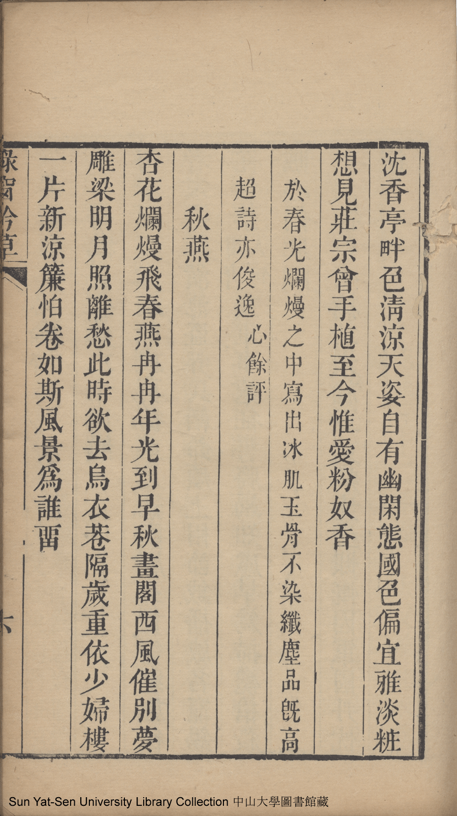 | 原書: 綠窗吟草: 一卷(清楊瓊華撰) |