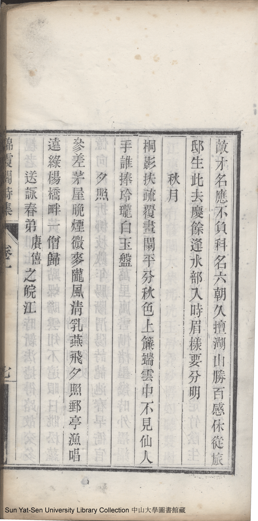 | (PRINT FRIENDLY VERSION) 錦霞閣詩集:五卷,詞集:一卷(清包蘭瑛撰)。宣統二年庚戌(1910)刊本 ![]() 頁碼 : 卷一7a | 点 击 放 大 | 錦霞閣詩集:五卷,詞集:一卷(清包蘭瑛撰)。宣統二年庚戌(1910)刊本![]() 頁碼 : 卷一6b | 点 击 放 大 | 返回 |