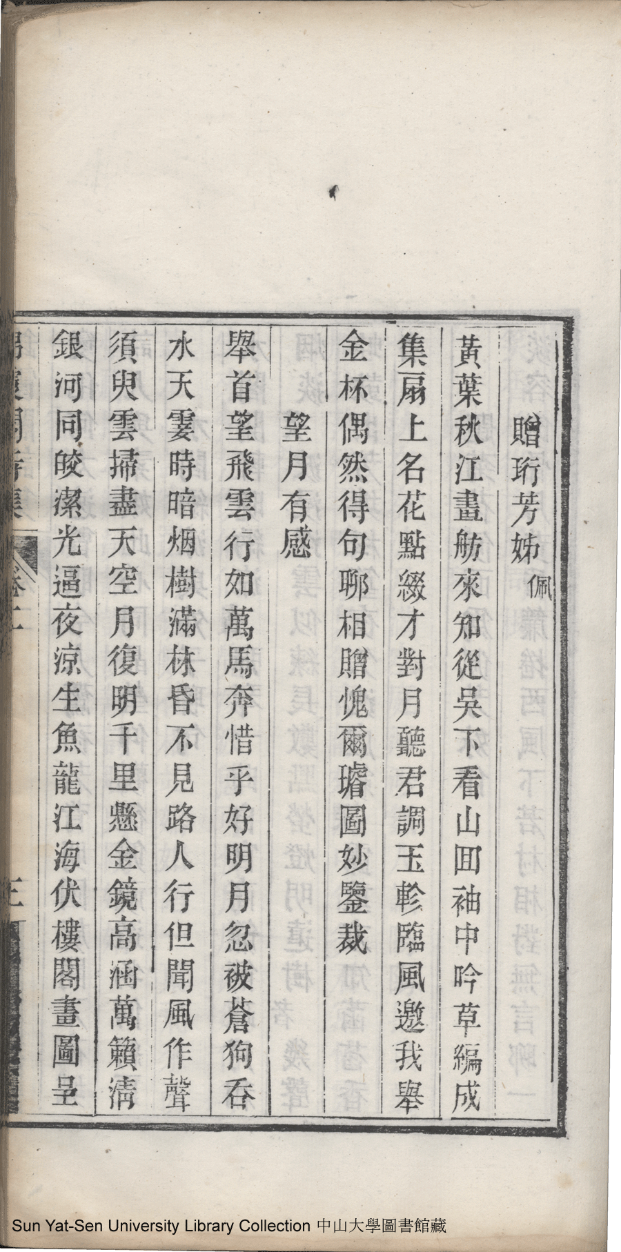 | (PRINT FRIENDLY VERSION) 錦霞閣詩集:五卷,詞集:一卷(清包蘭瑛撰)。宣統二年庚戌(1910)刊本 ![]() 頁碼 : 卷二3a | 点 击 放 大 | 返回 |