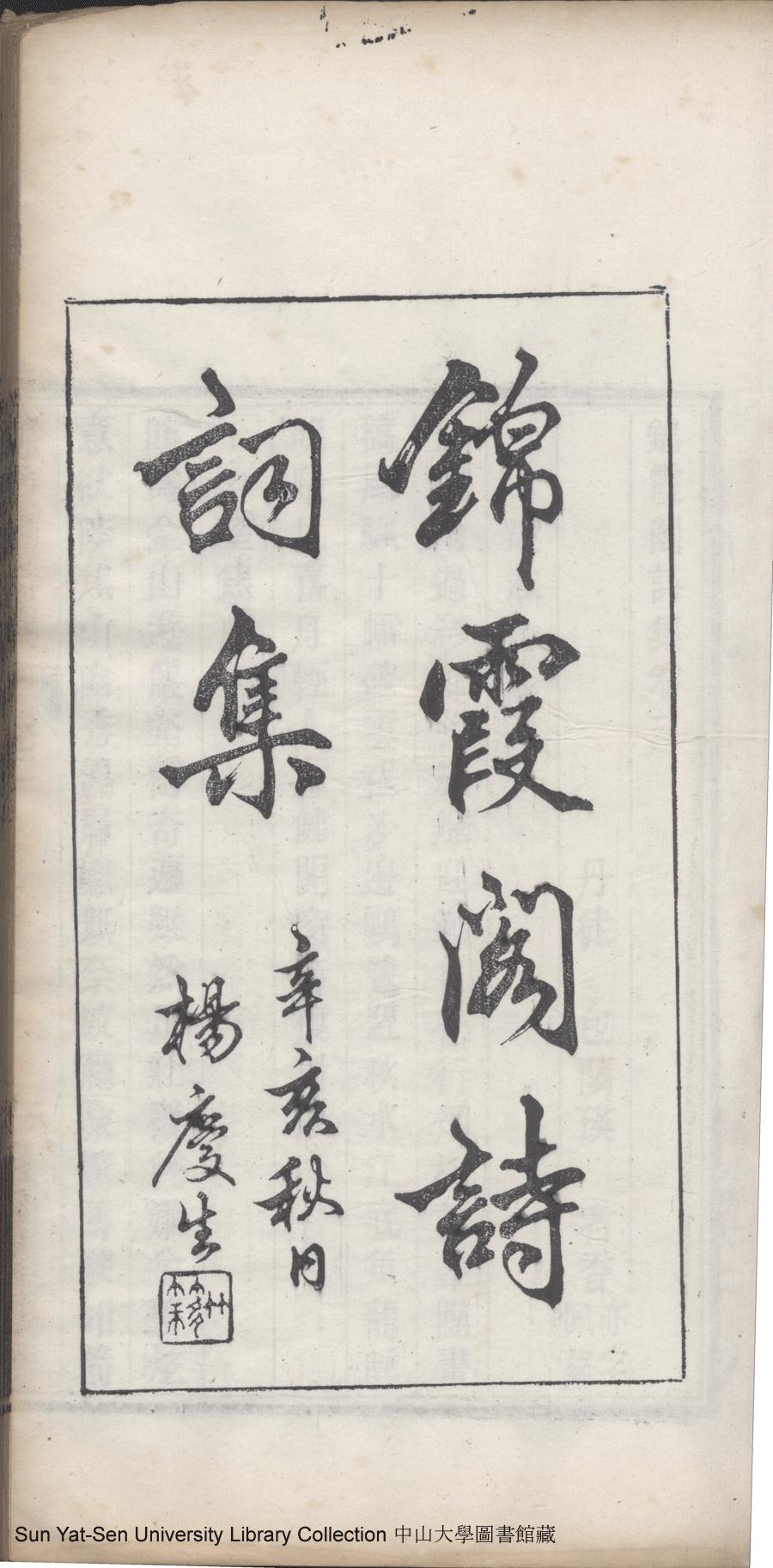 錦霞閣詩集:五卷,詞集:一卷(清包蘭瑛撰)。宣統二年庚戌(1910)刊本