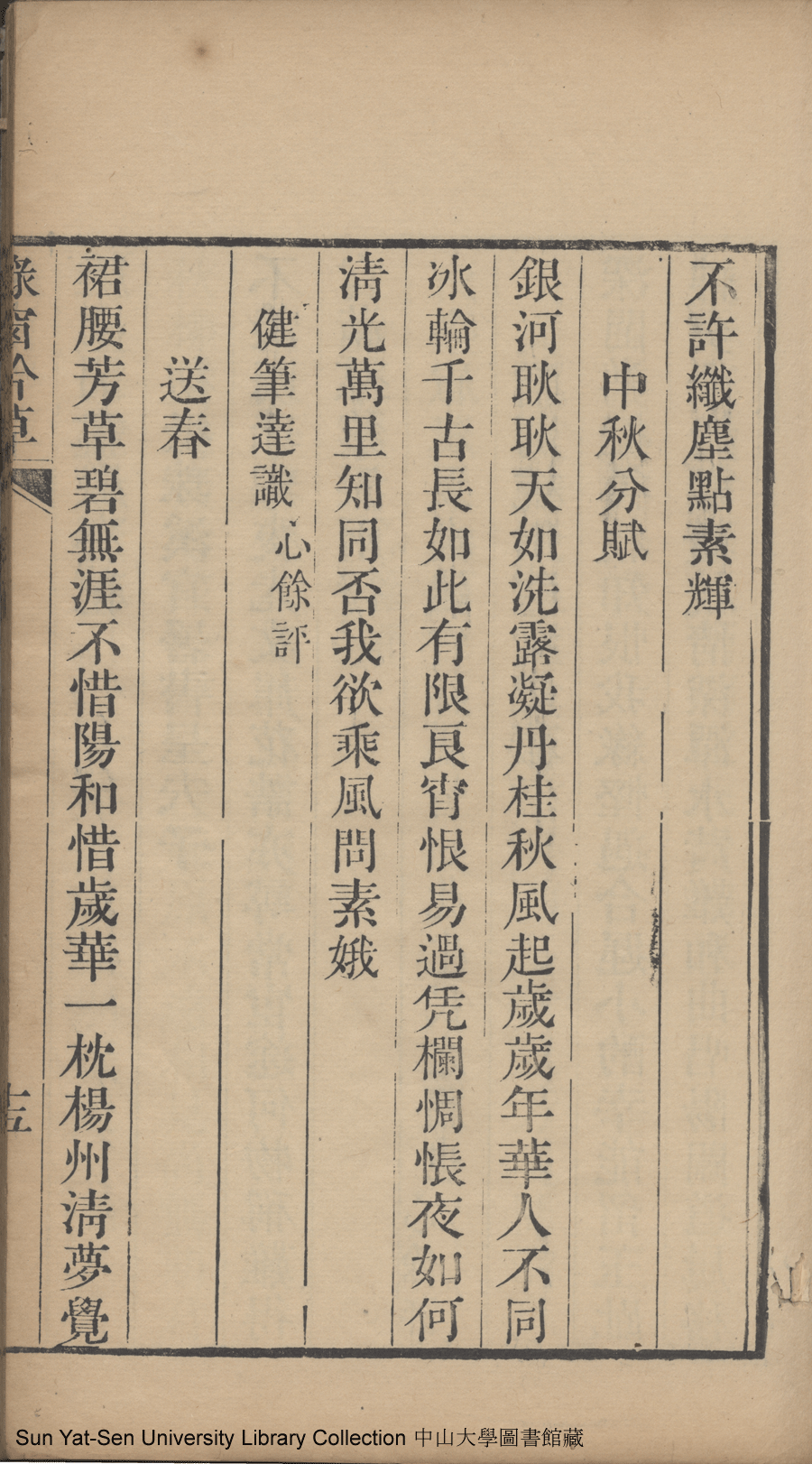 | 原書: 綠窗吟草: 一卷(清楊瓊華撰) |
