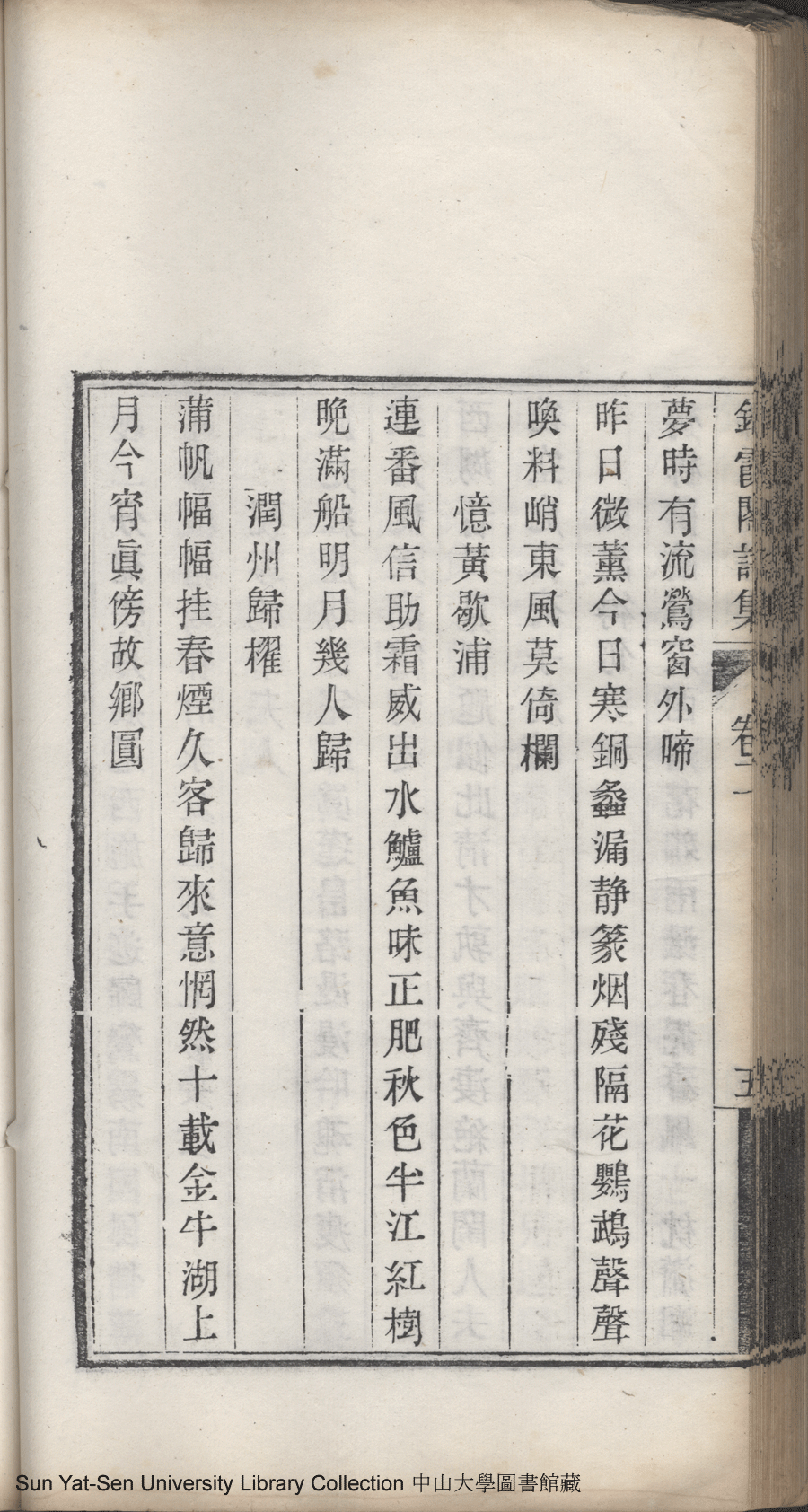 | (PRINT FRIENDLY VERSION) 錦霞閣詩集:五卷,詞集:一卷(清包蘭瑛撰)。宣統二年庚戌(1910)刊本 ![]() 頁碼 : 卷二5b | 点 击 放 大 | 返回 |